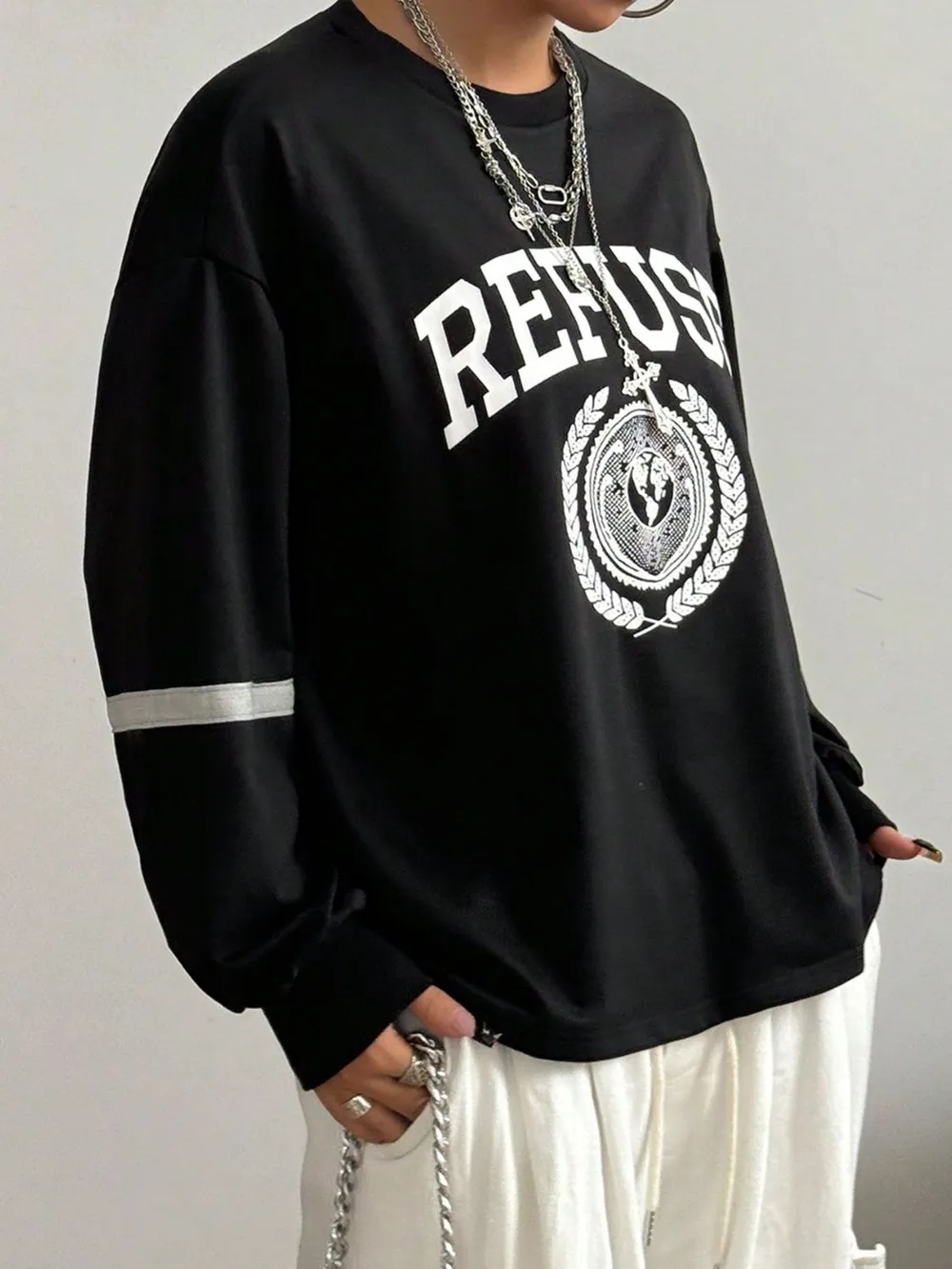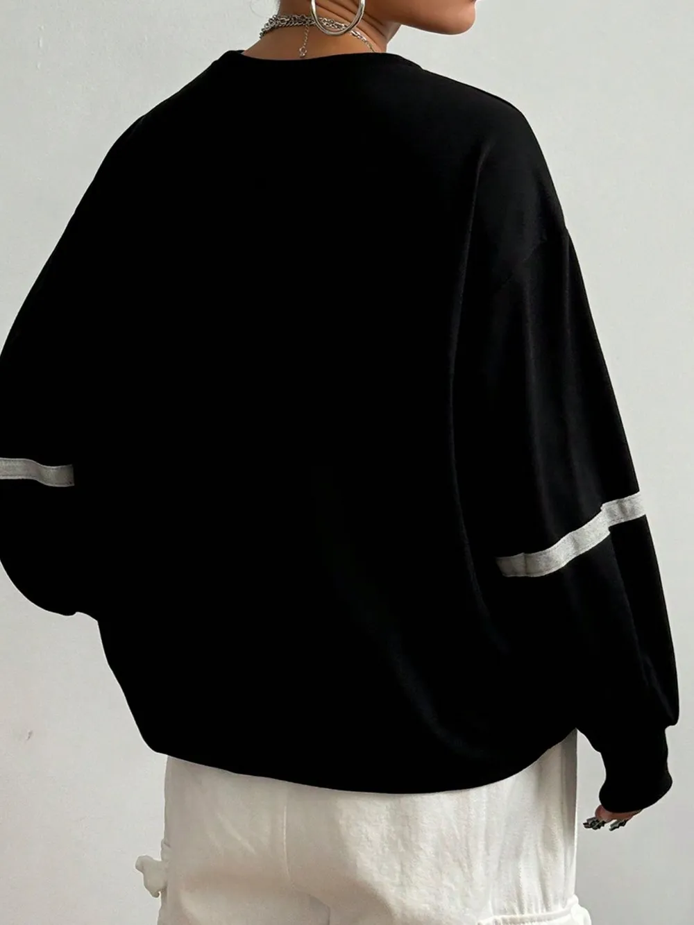 Letter Graphic Round Neck Long Sleeve Sweatshirt