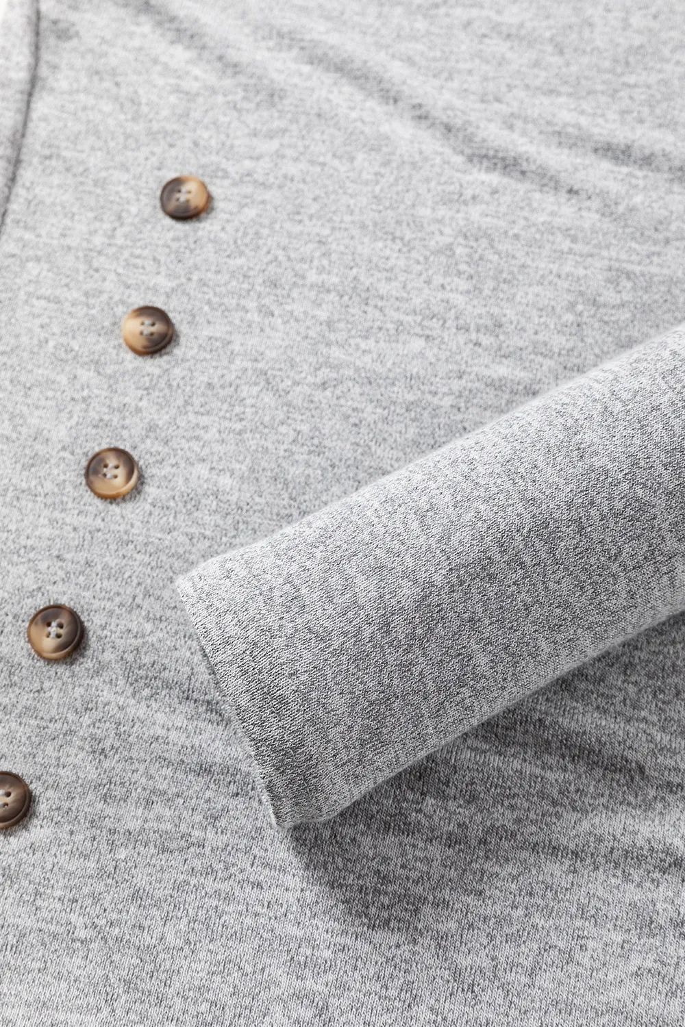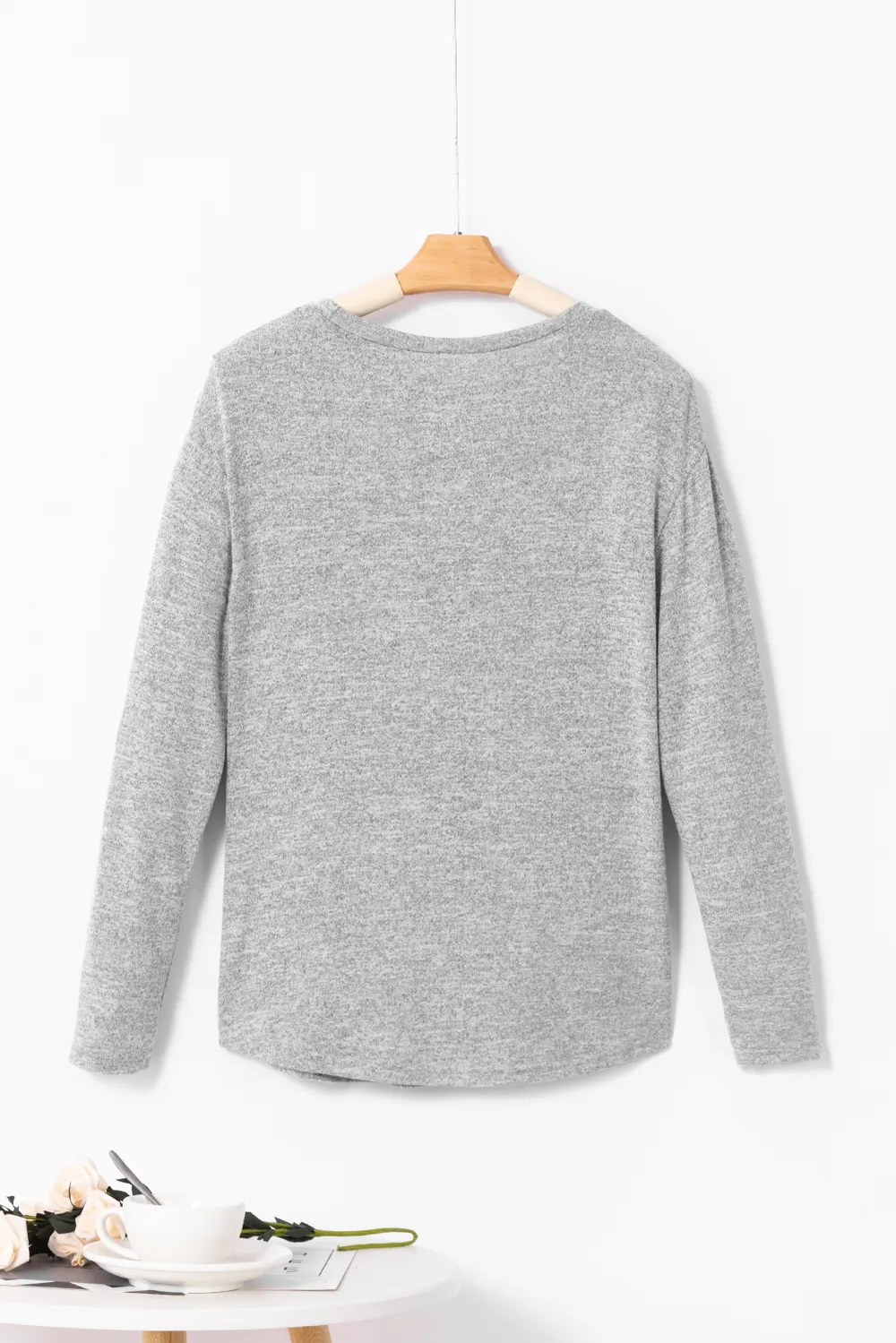 Decorative Button Round Neck Long Sleeve Top