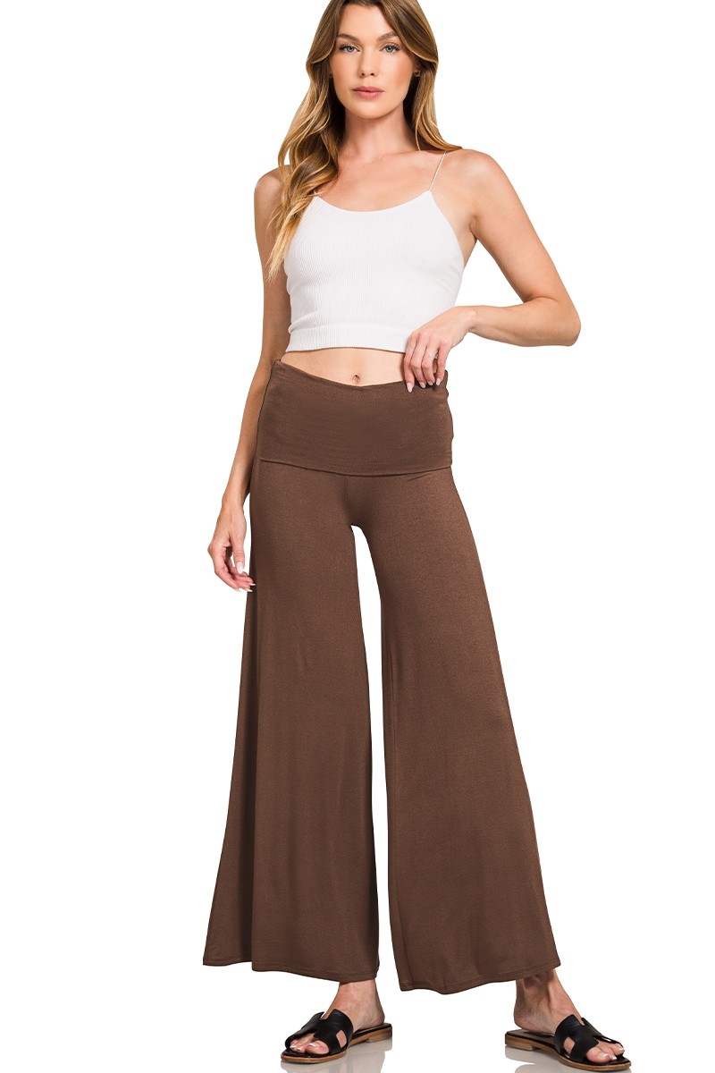 Zenana Fold Over Waist Comfy Wide Leg Pants