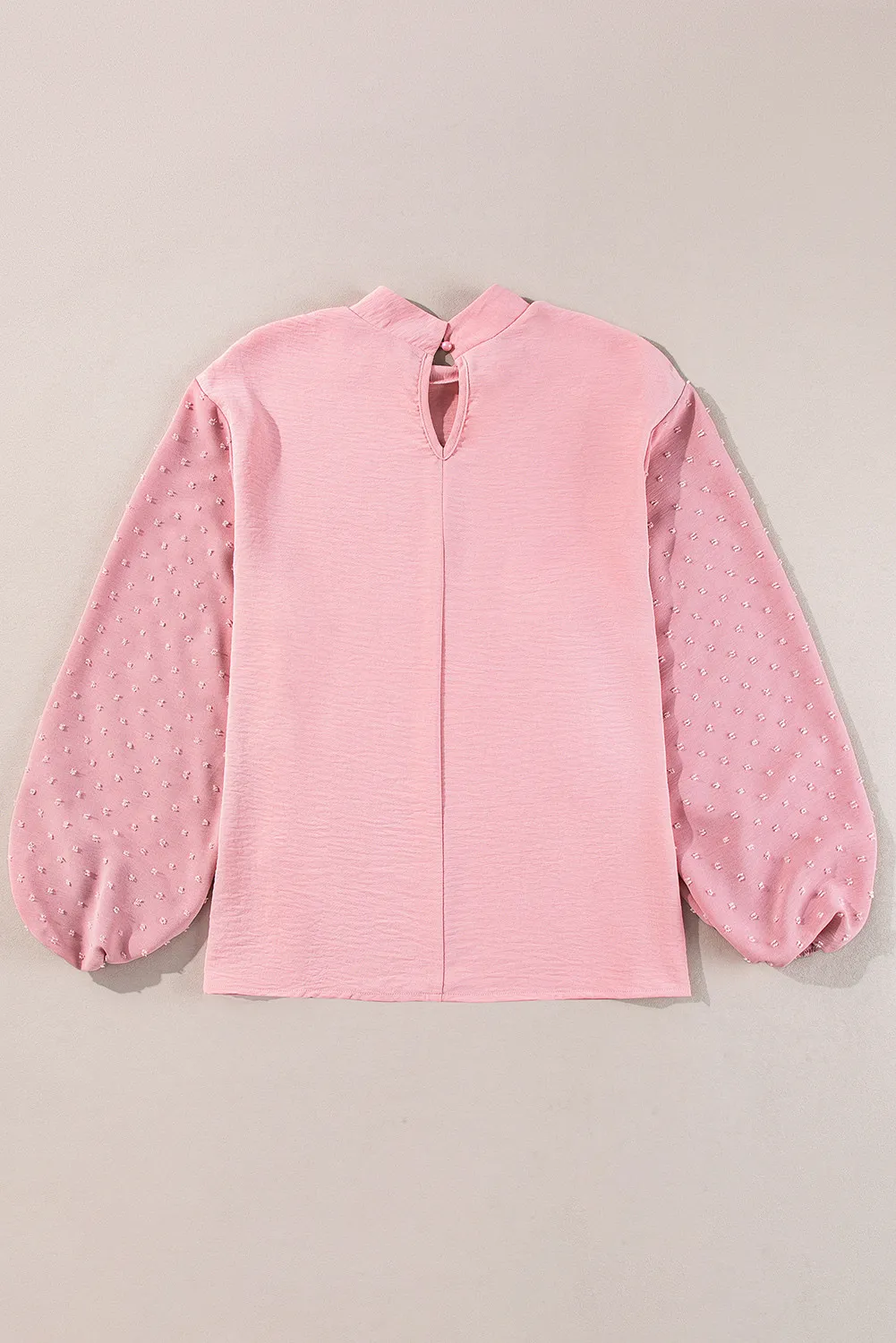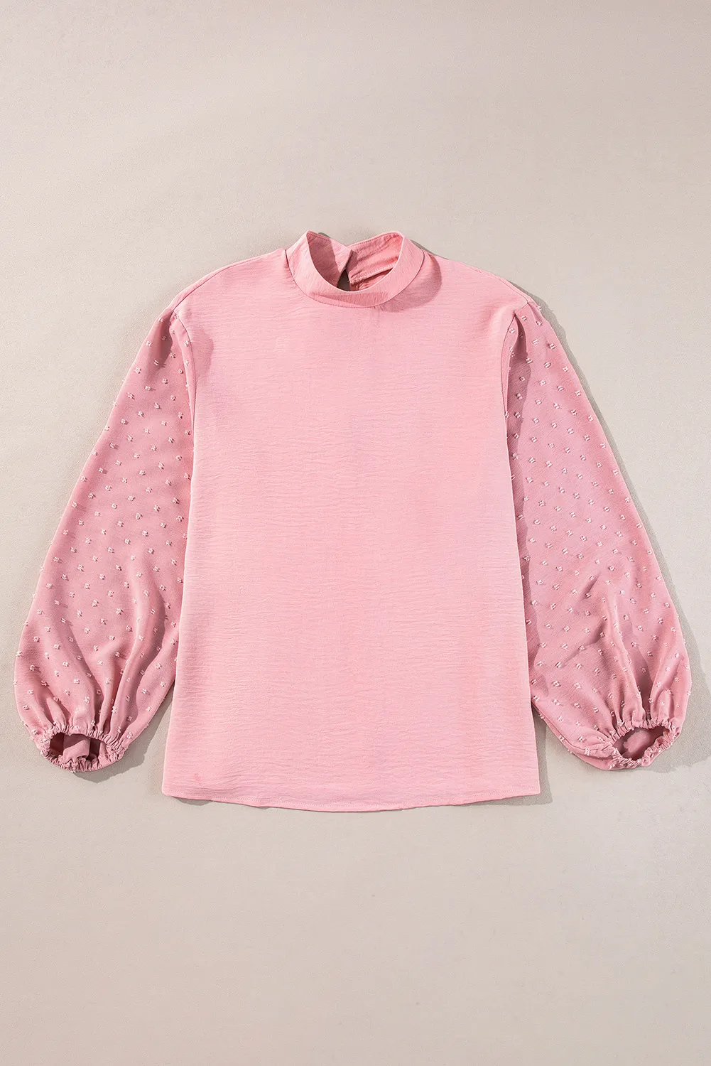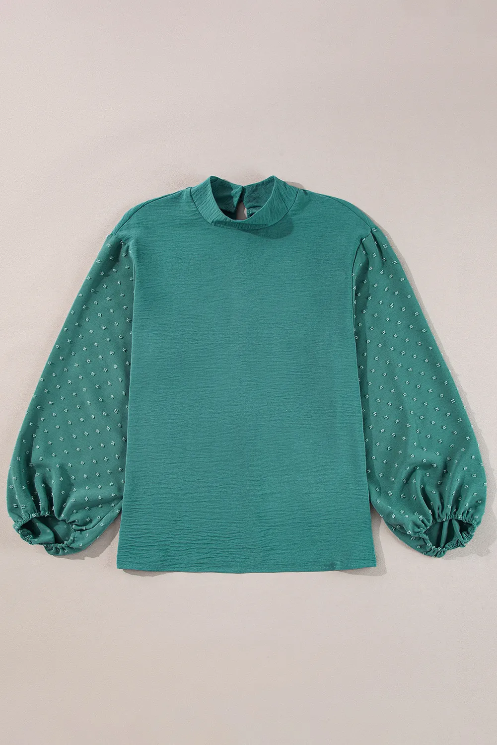 Swiss Dot Mock Neck Balloon Sleeve Blouse