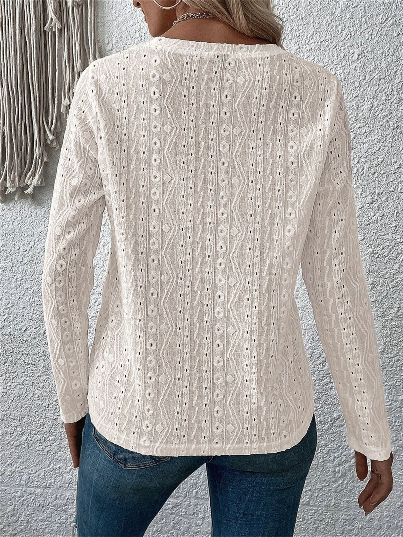 Full Size Eyelet Round Neck Long Sleeve Blouse Plus Size