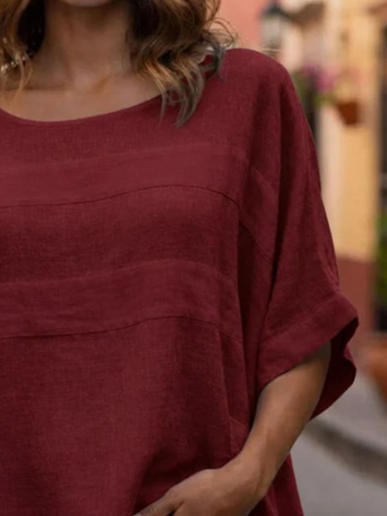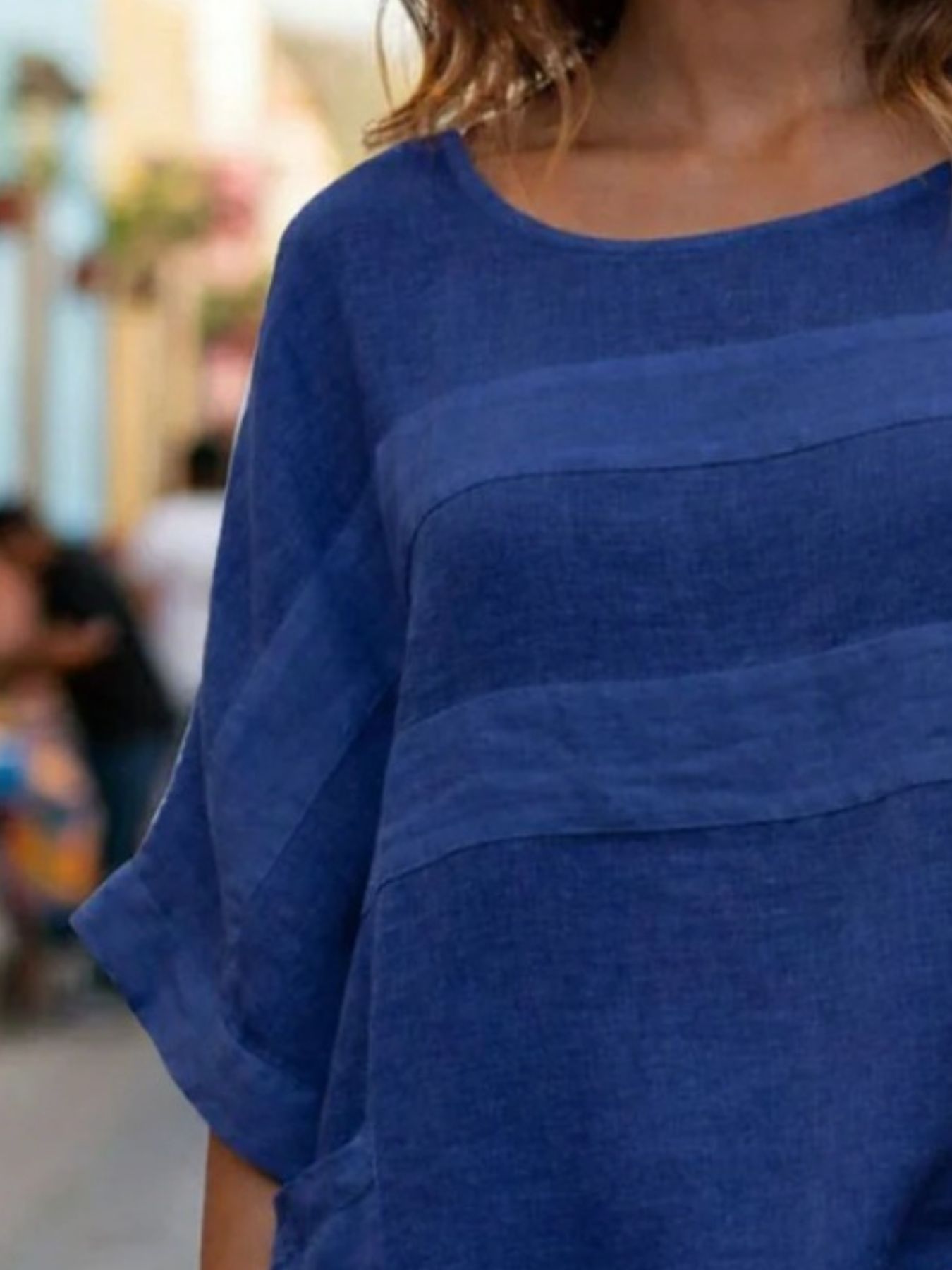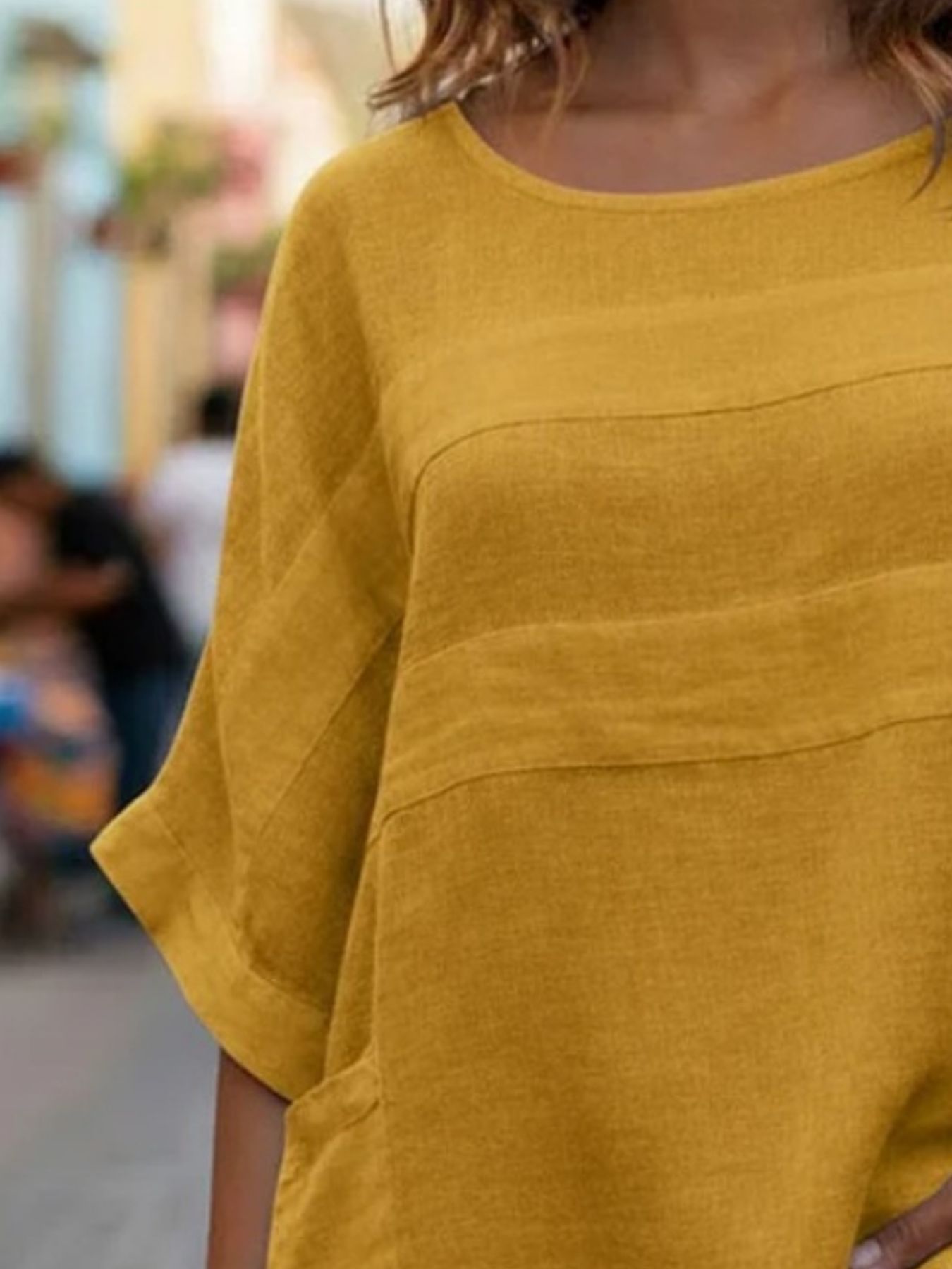 Full Size Round Neck Casual Loose Top With Pockets Plus Size