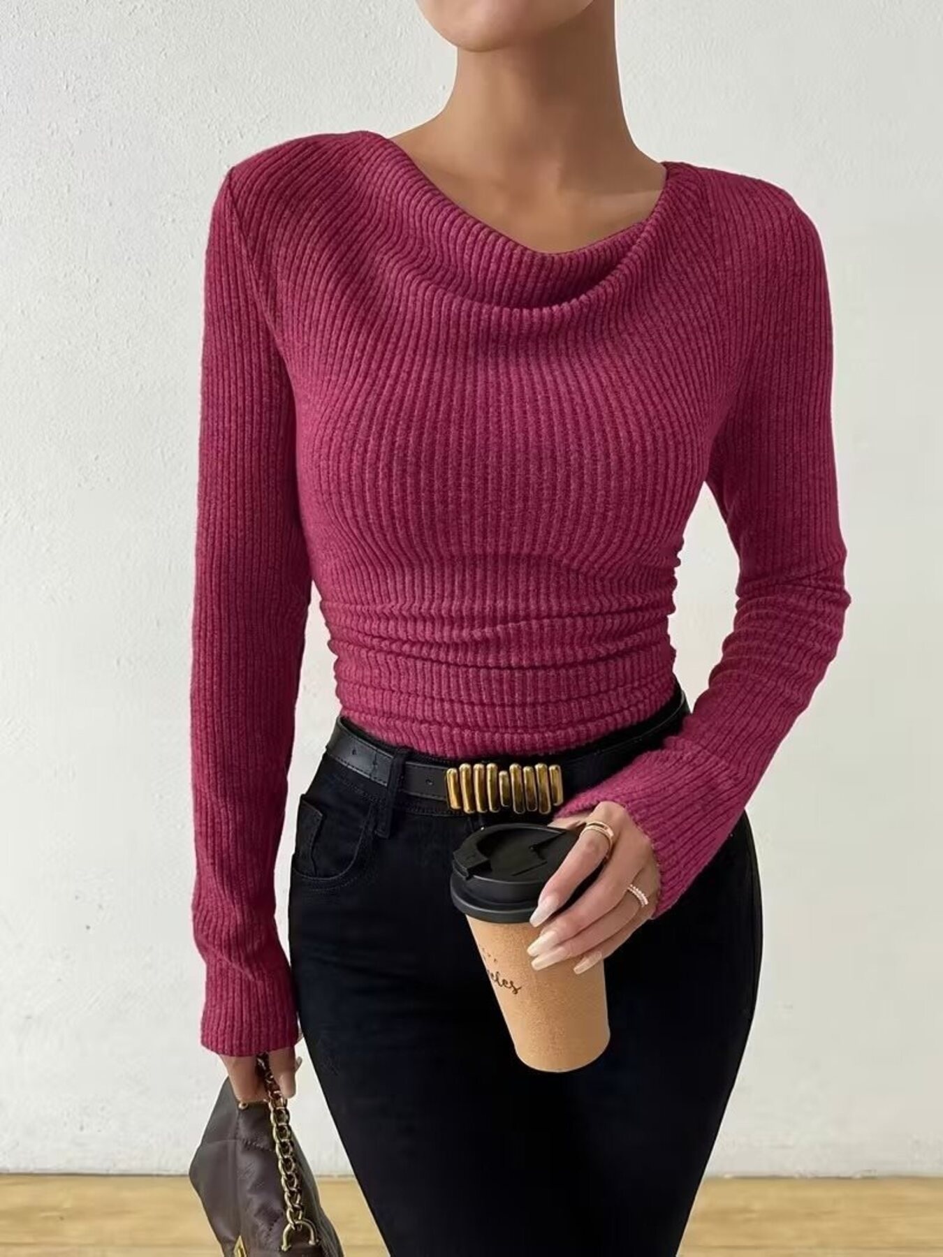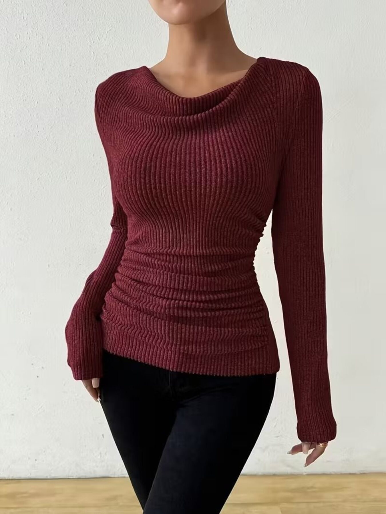 Cowl Neck Ribbed Knit Top