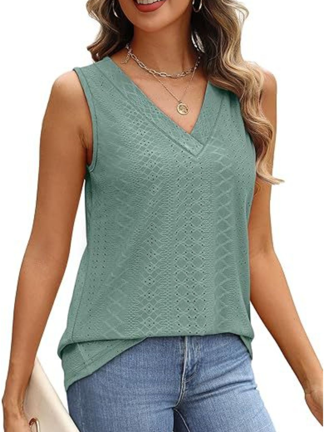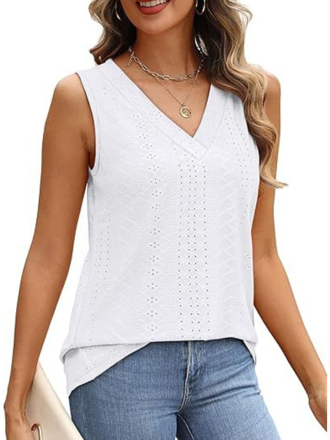 Eyelet V-Neck Tank