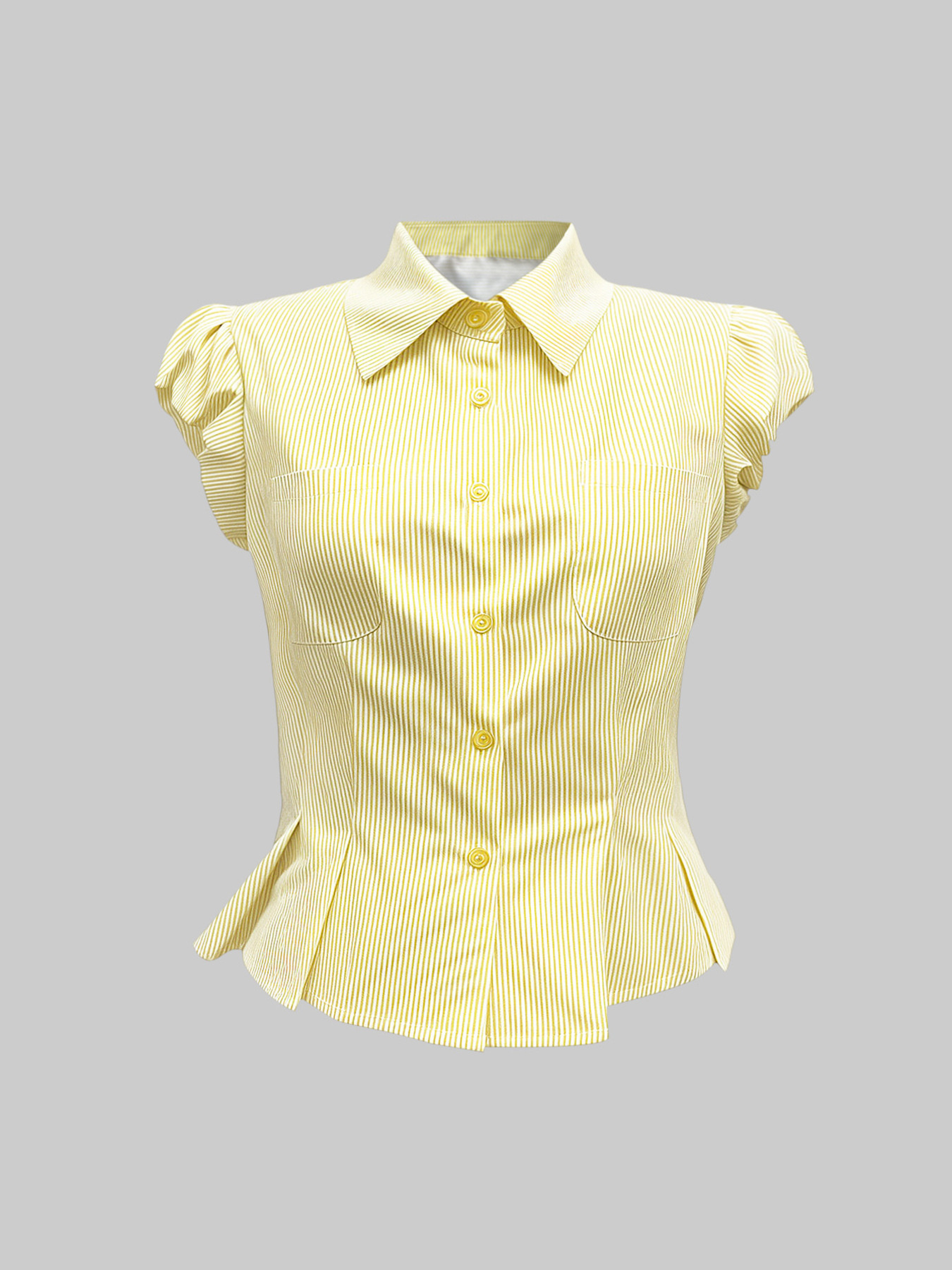 Striped Puff Sleeve Button-Up Shirt