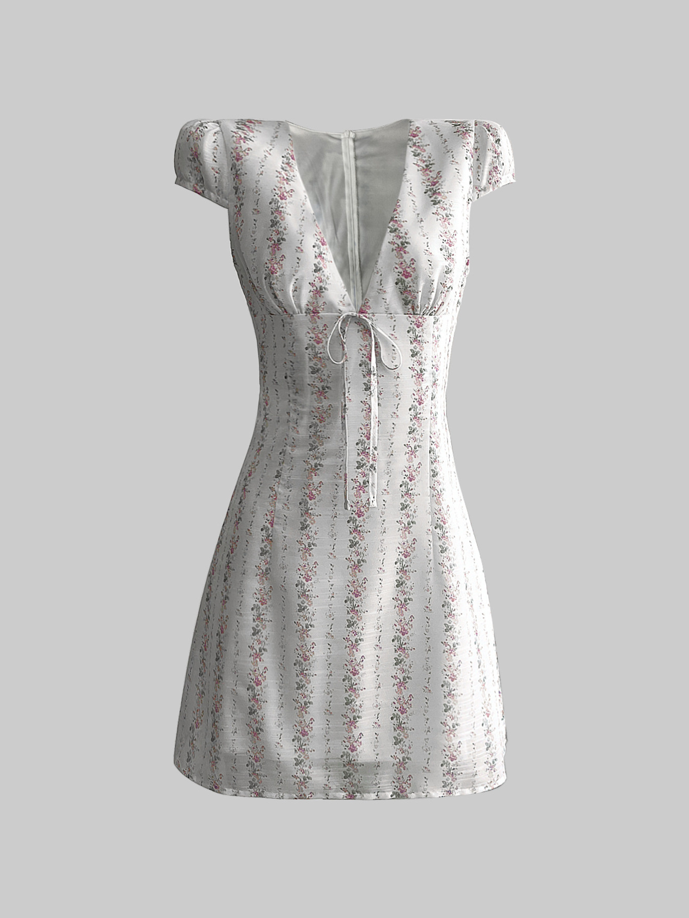 Floral Tie-Front Deep V-Neck Mini Dress