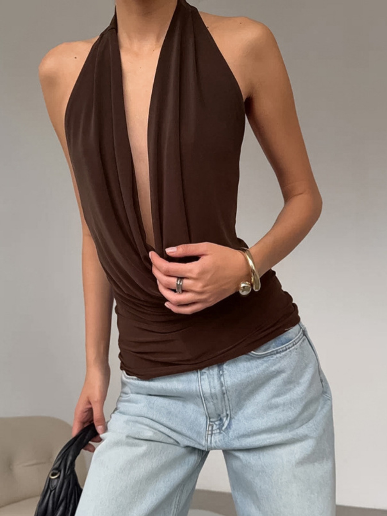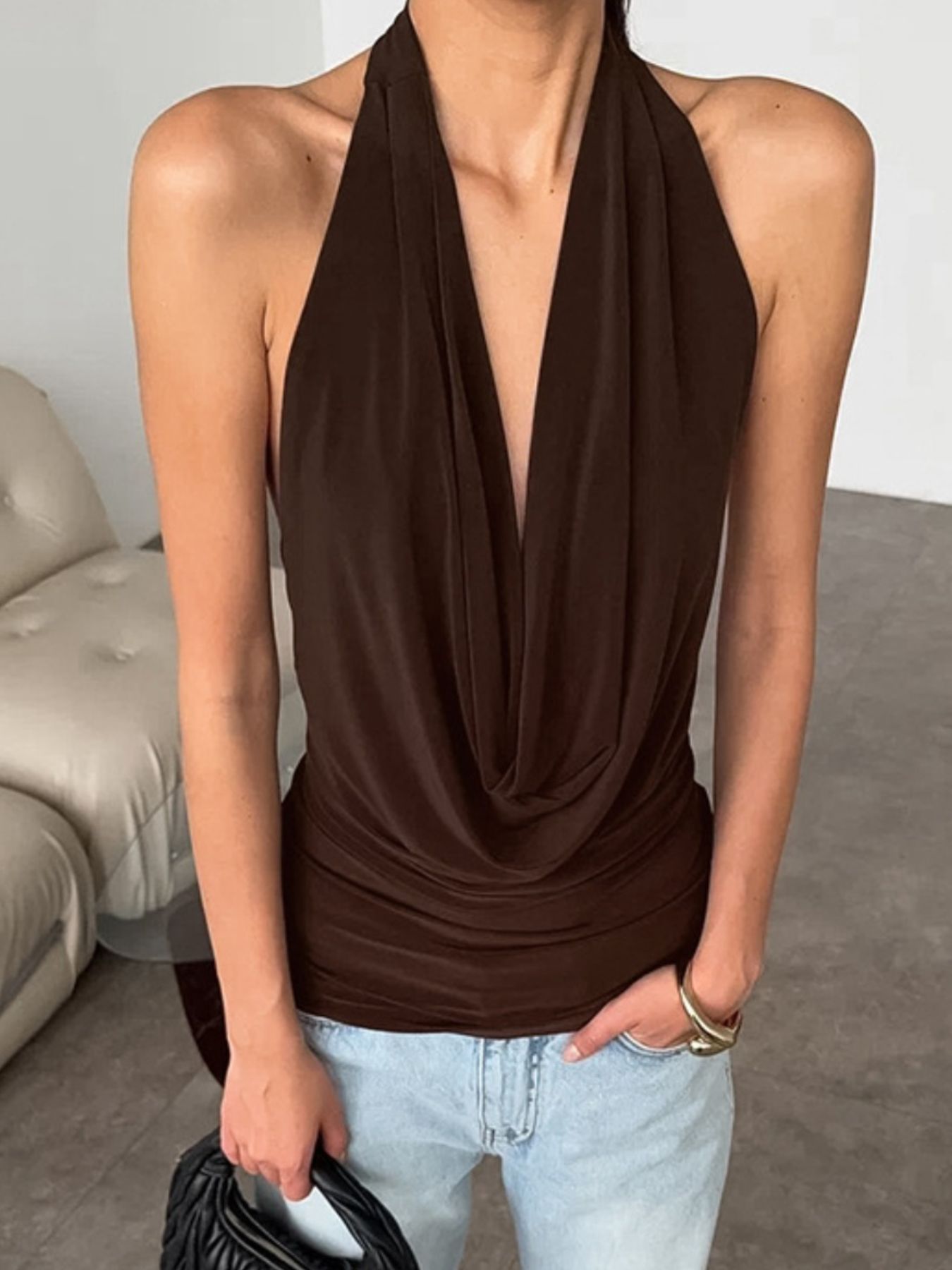 Backless Halter Cowl Neck Cami