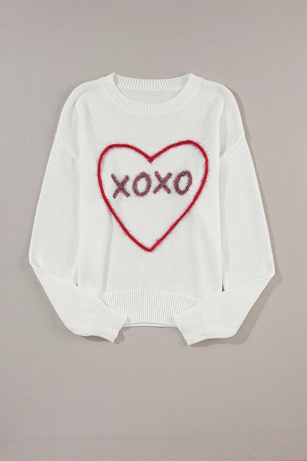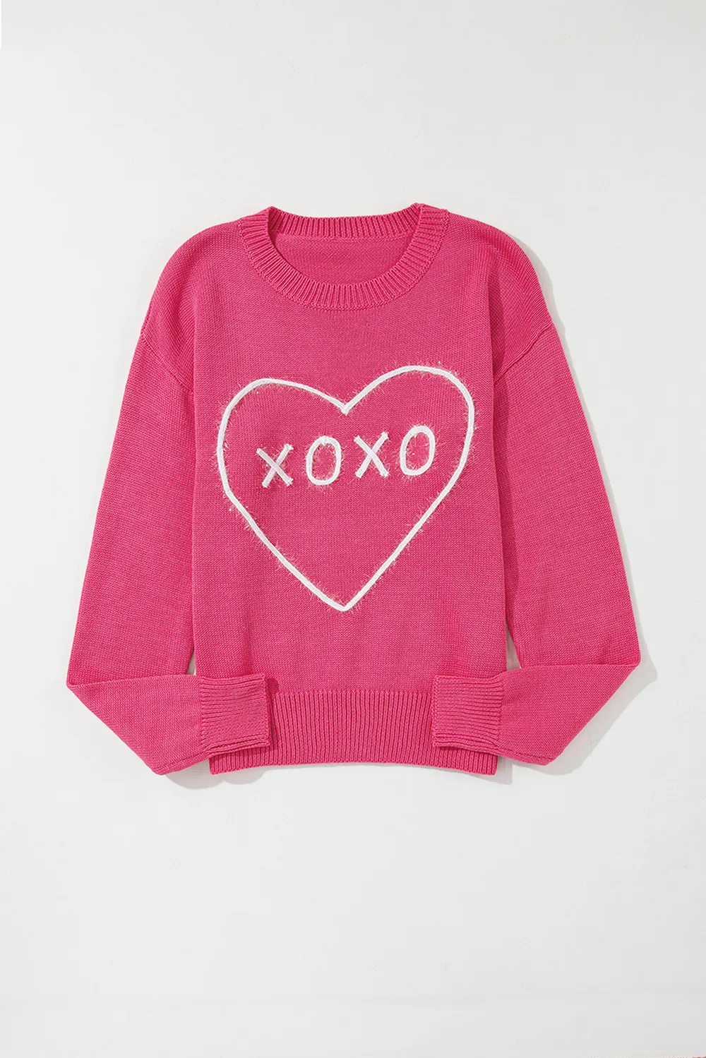 Xoxo Round Neck Drop Shoulder Sweater