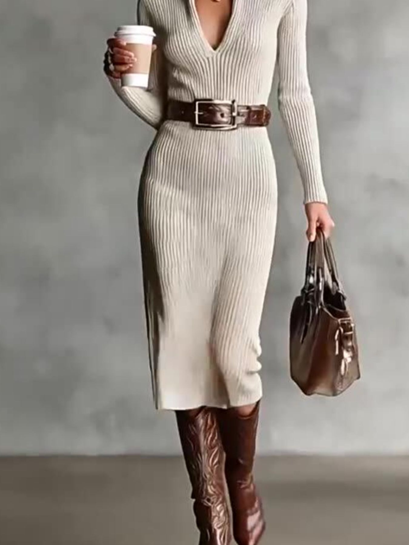 Ribbed Knit Turtleneck Bodycon Sweater Dress