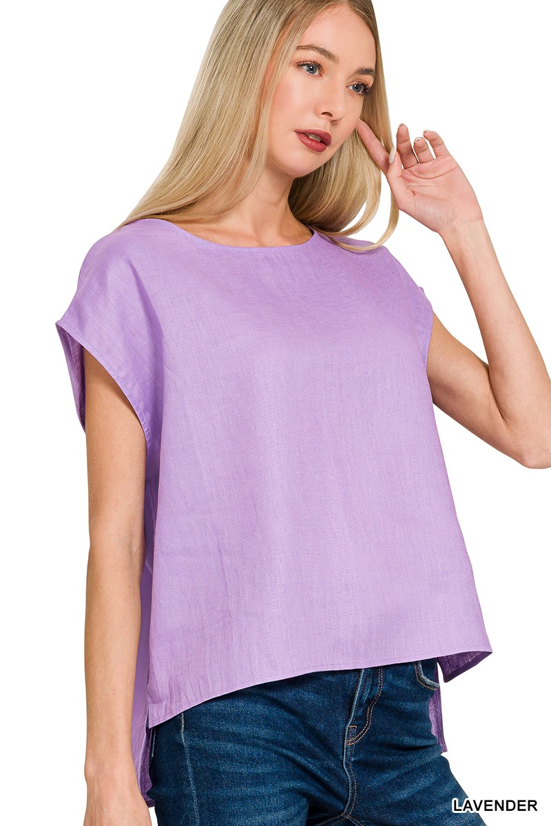 Zenana Linen Round Neck Cap Sleeve Top