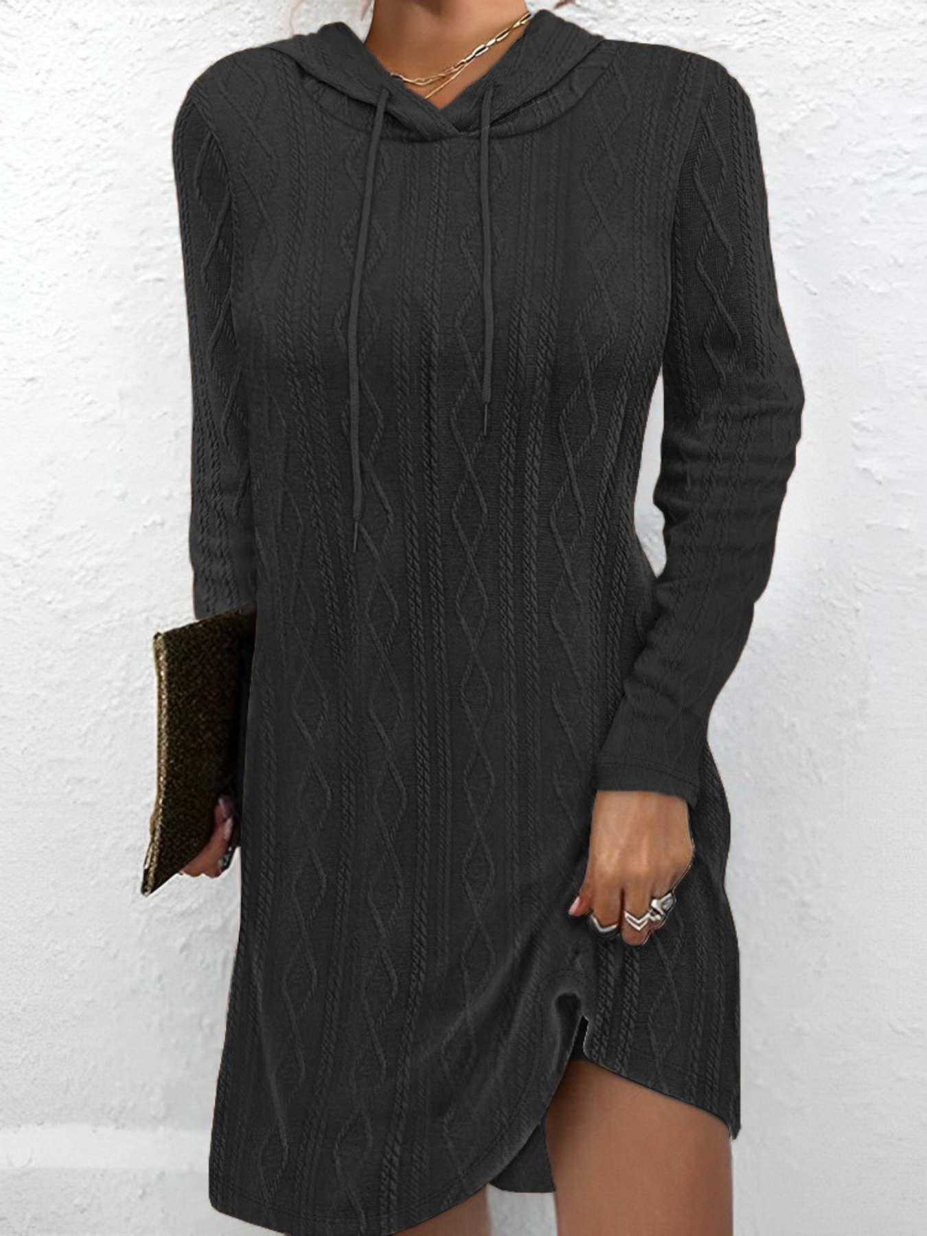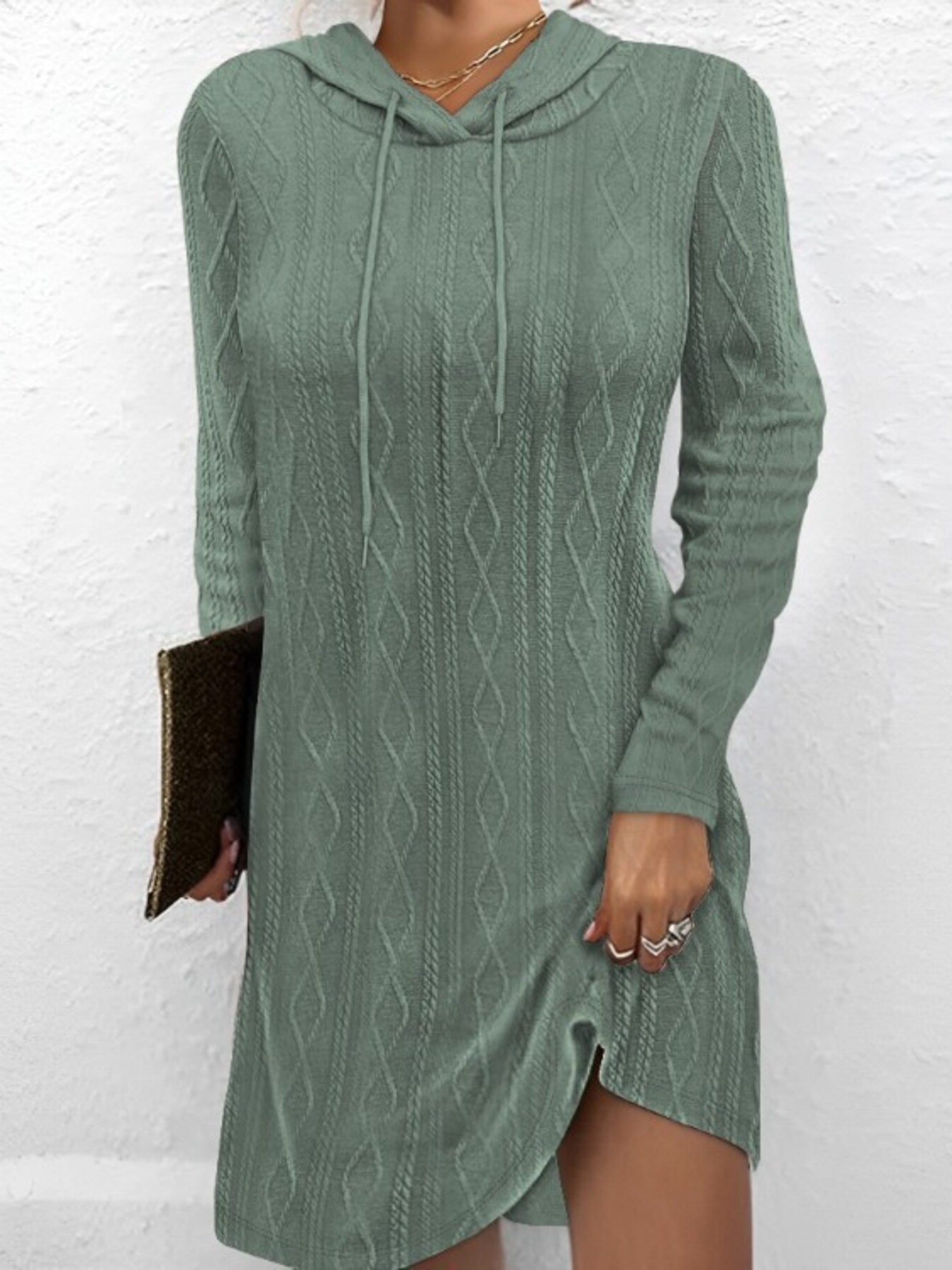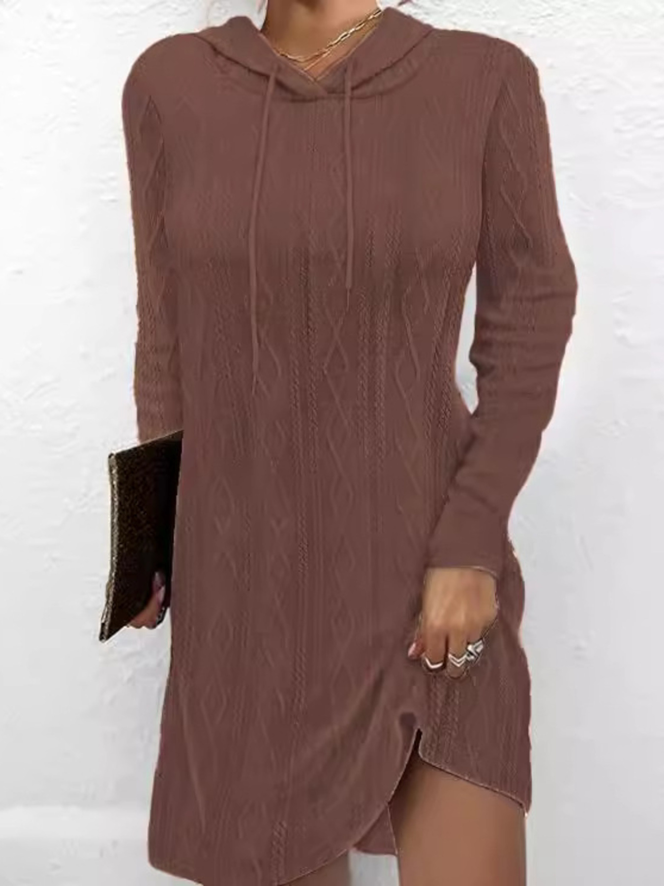 Casual Long Sleeve Hooded Knit Dress
