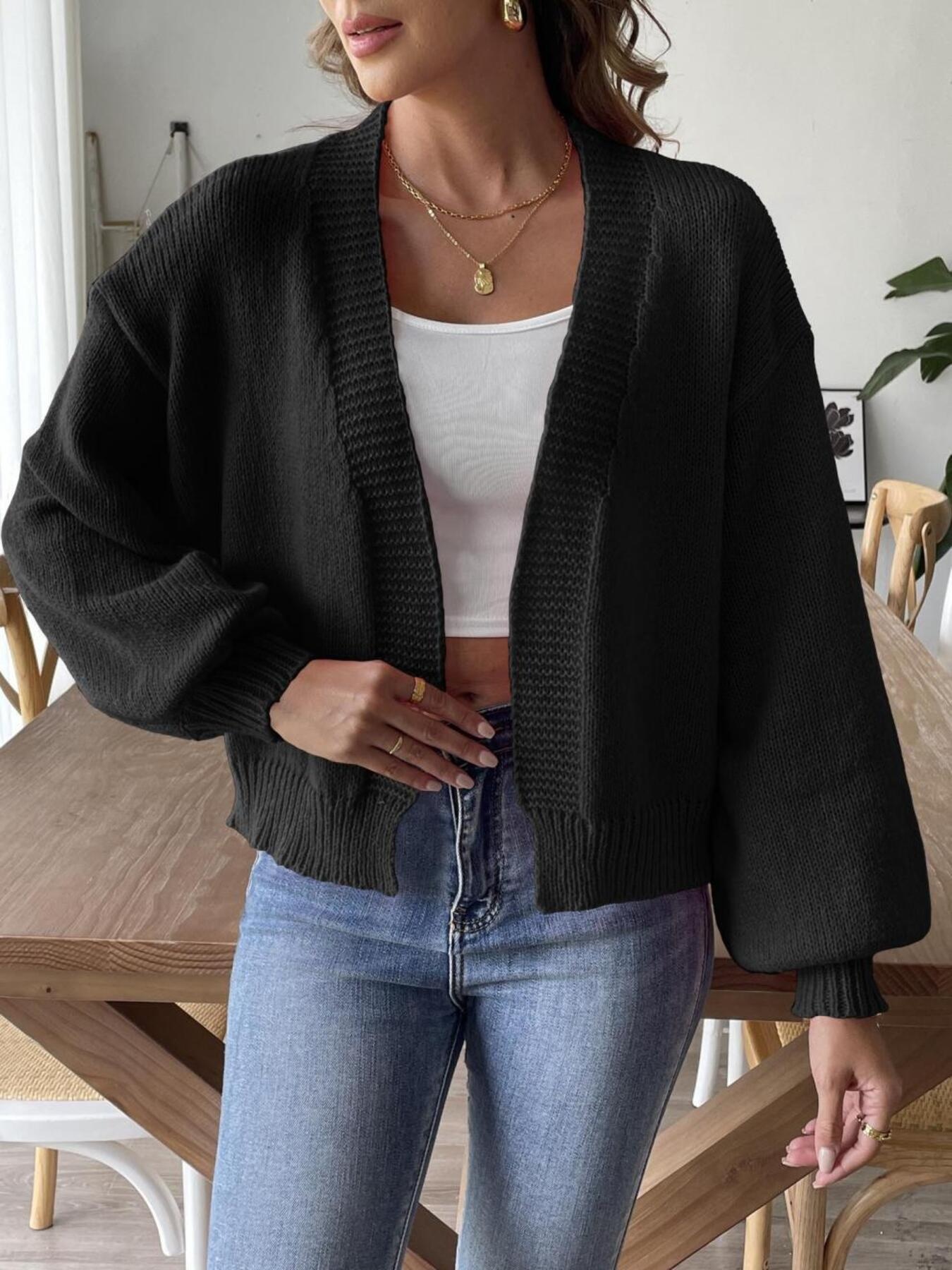 Open Front Dropped Shoulder Cardigan