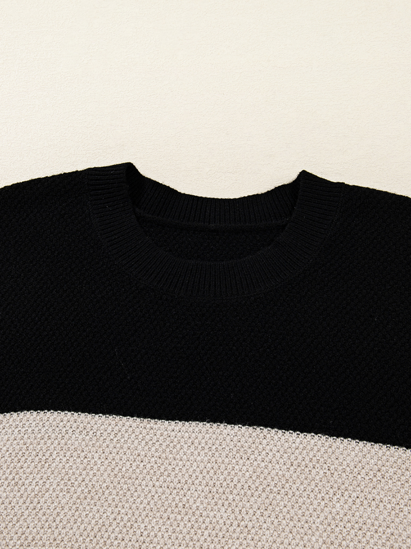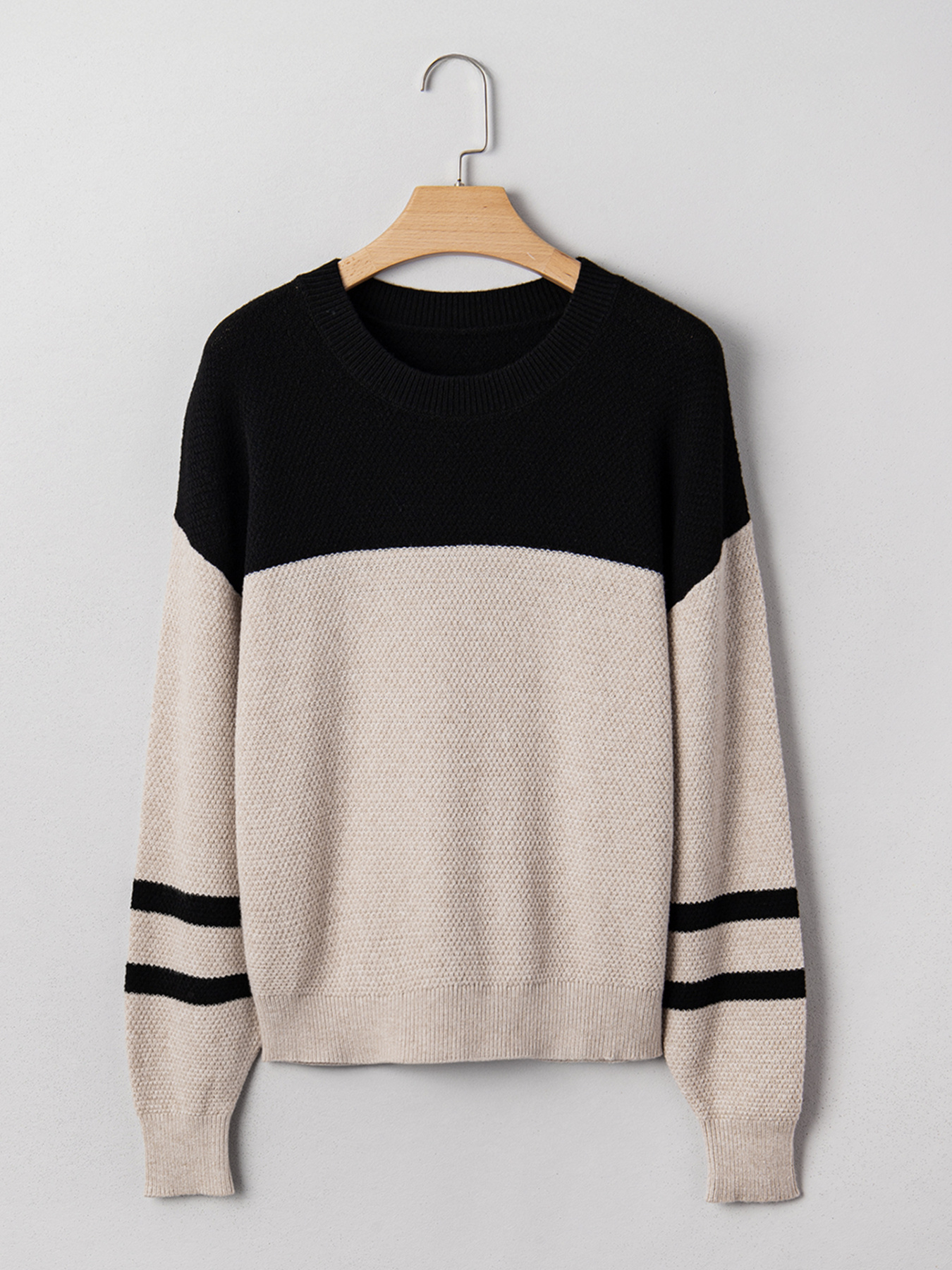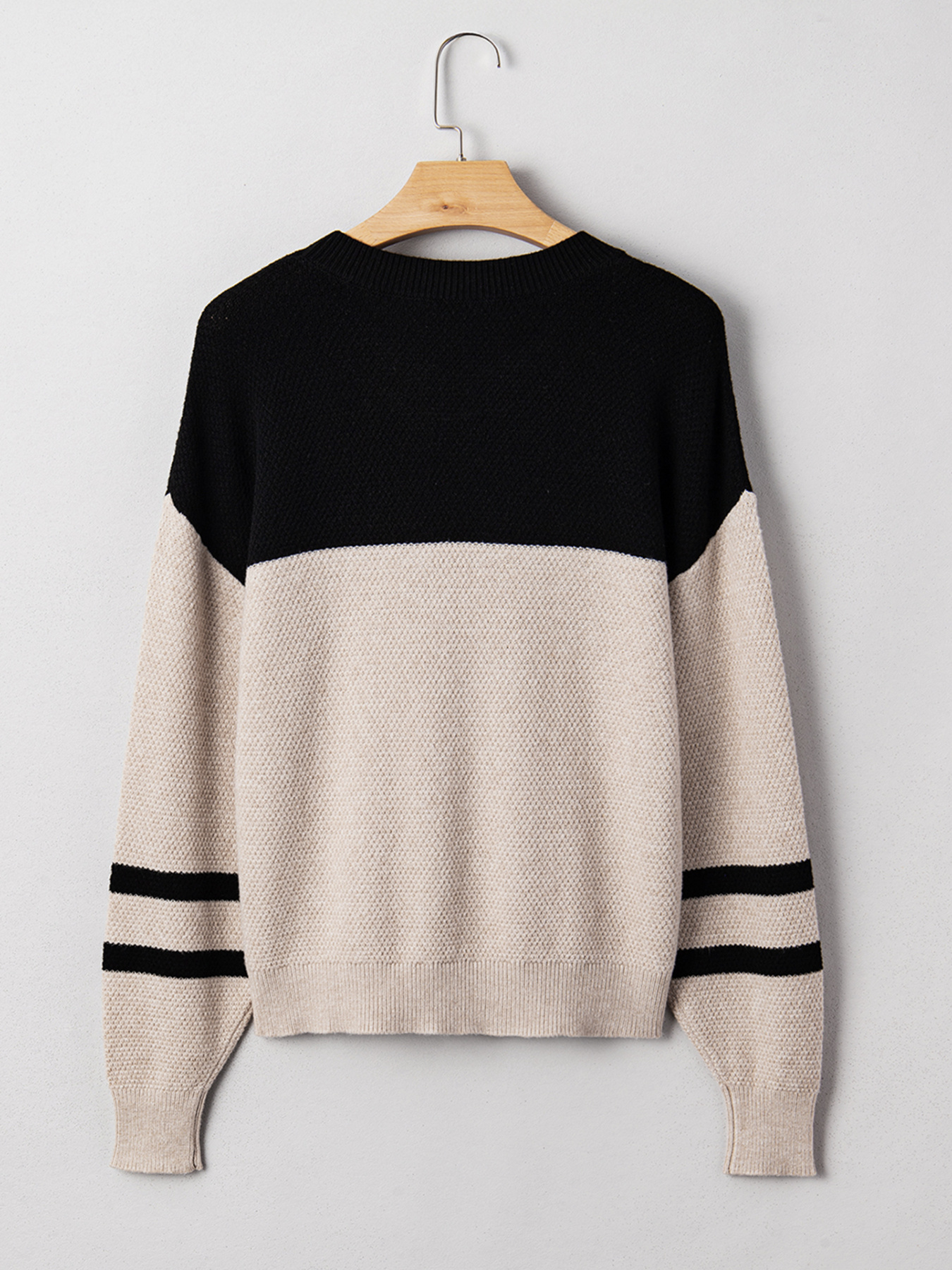 Color Block Knit Striped Sleeve Detail Casual Sweater