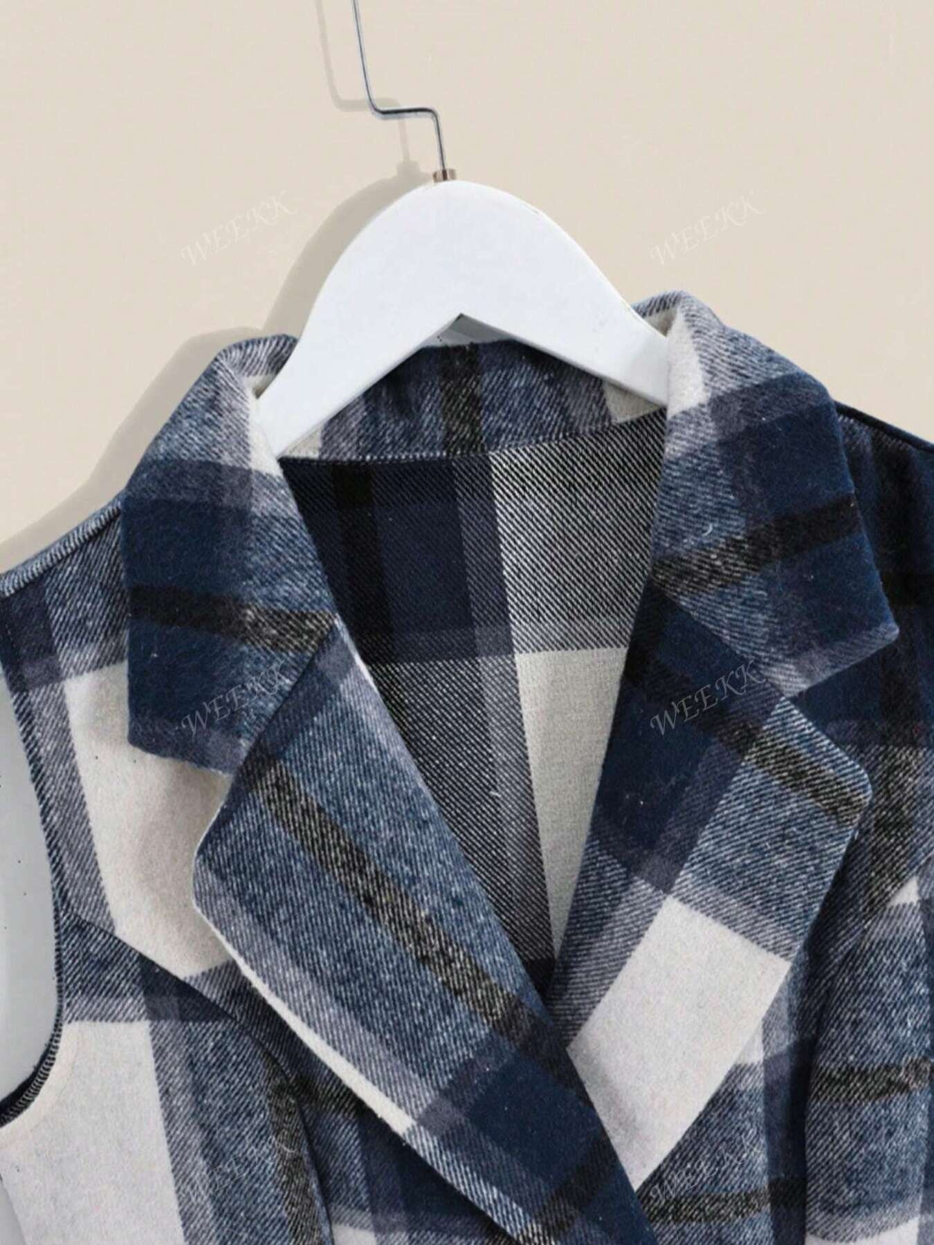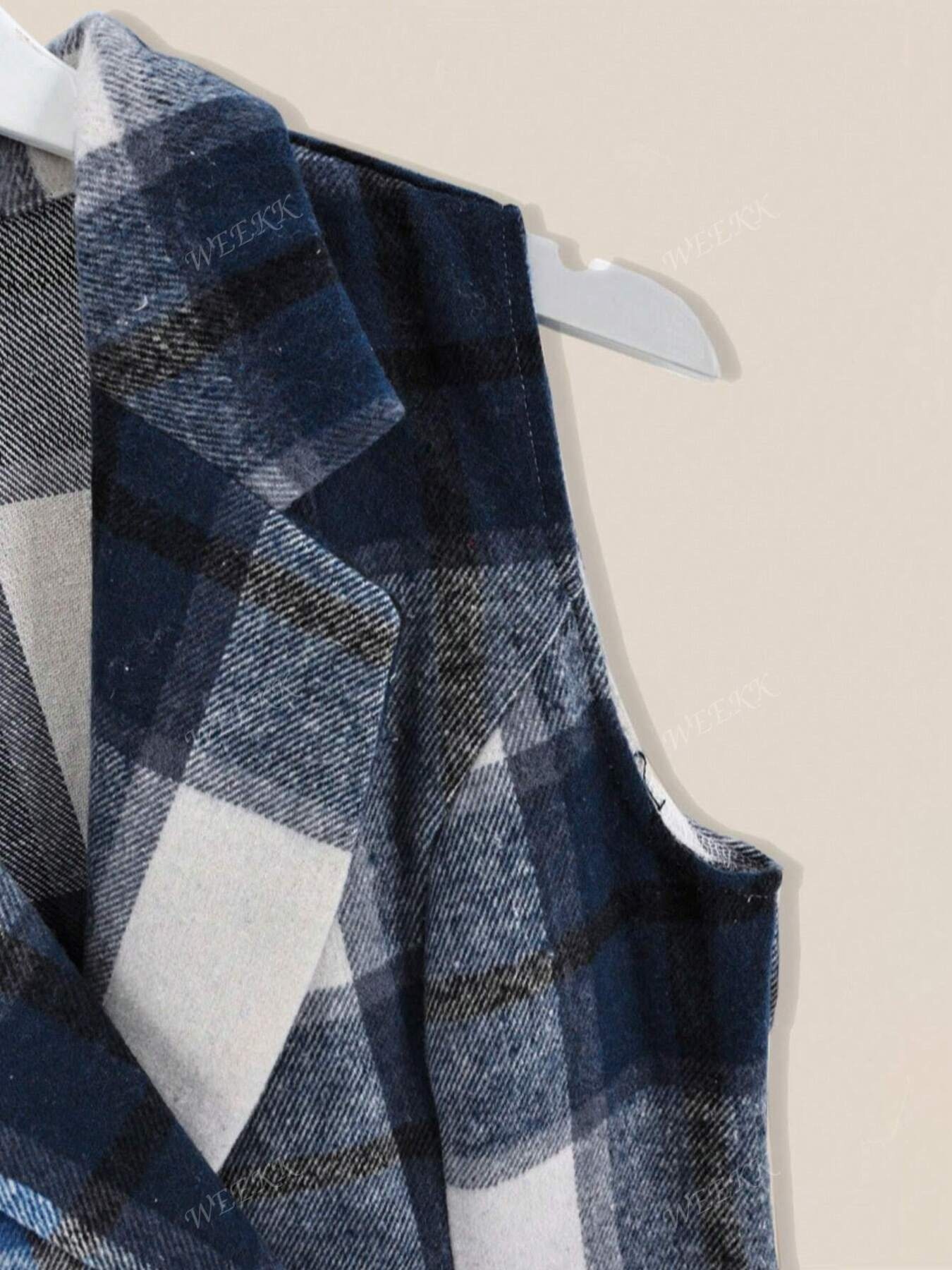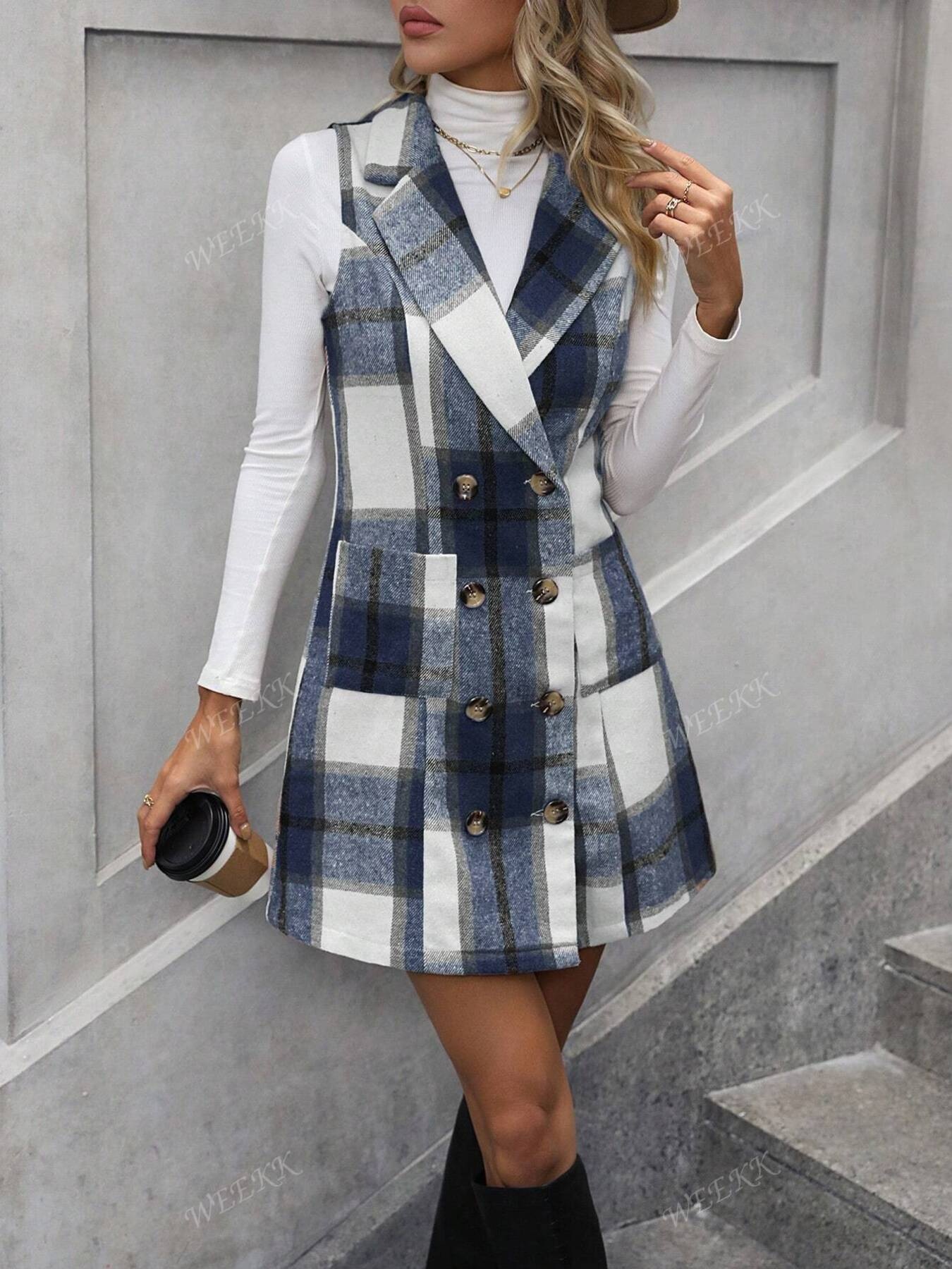 Plaid Double-Breasted Sleeveless Blazer Dress