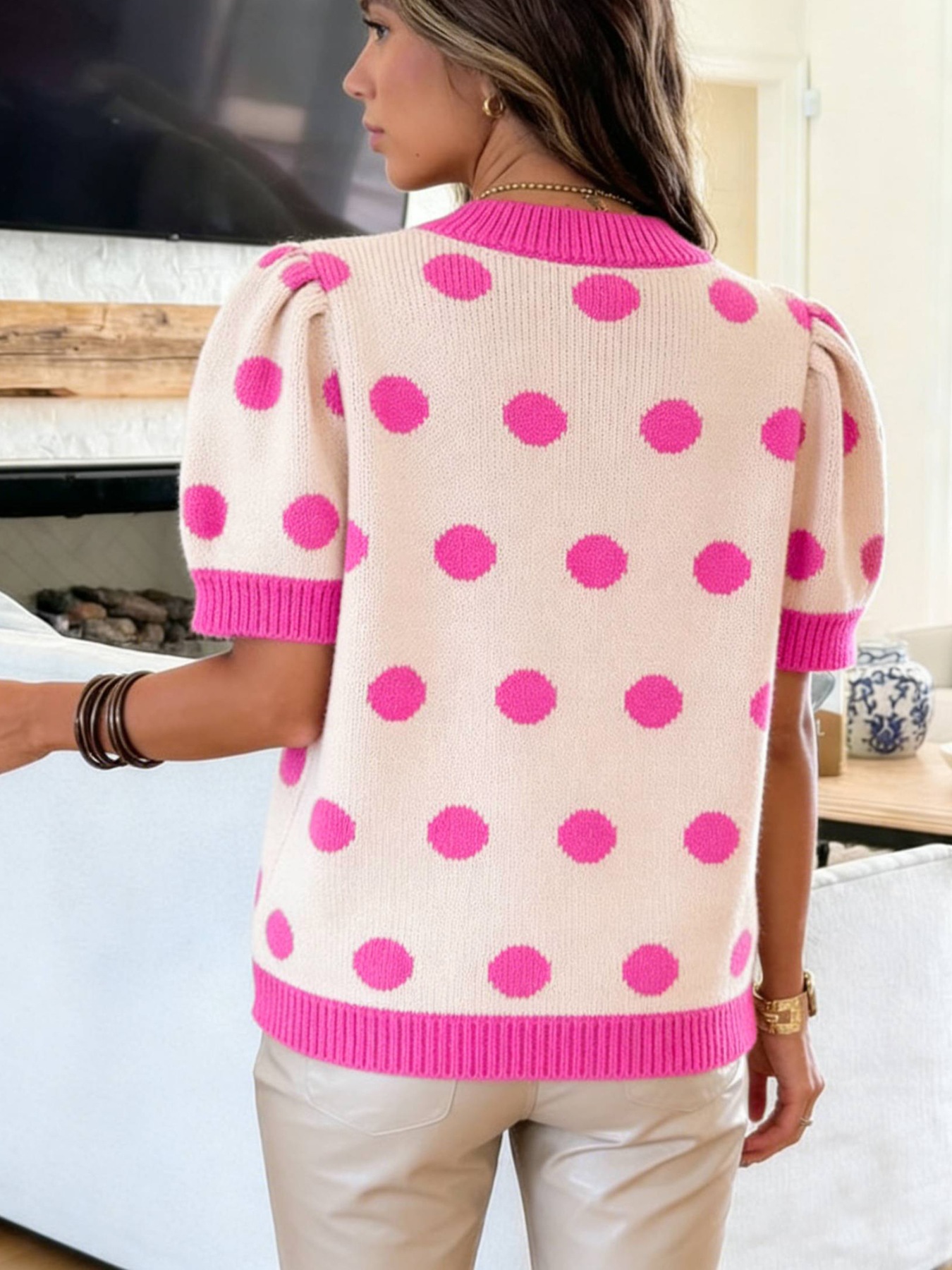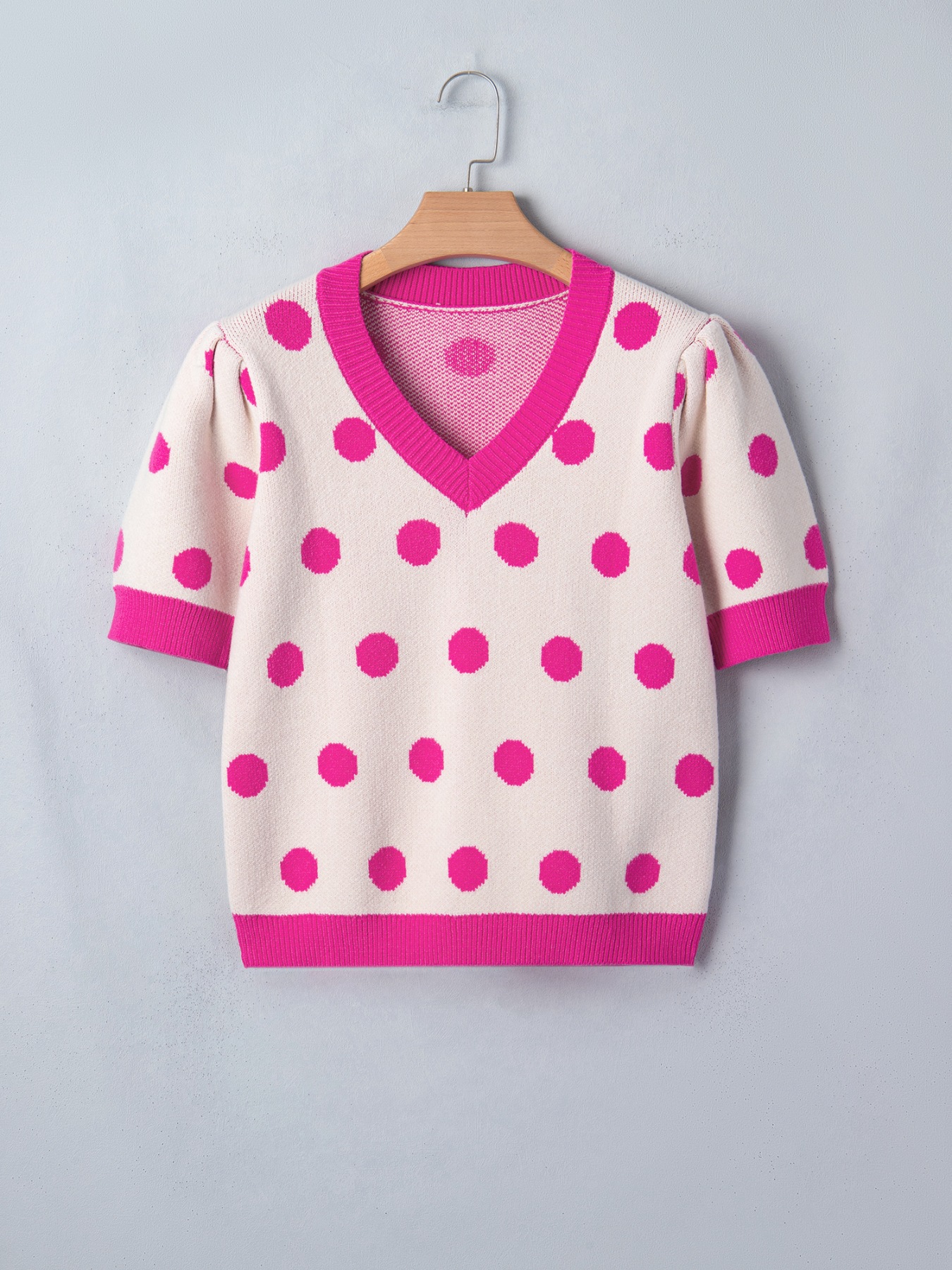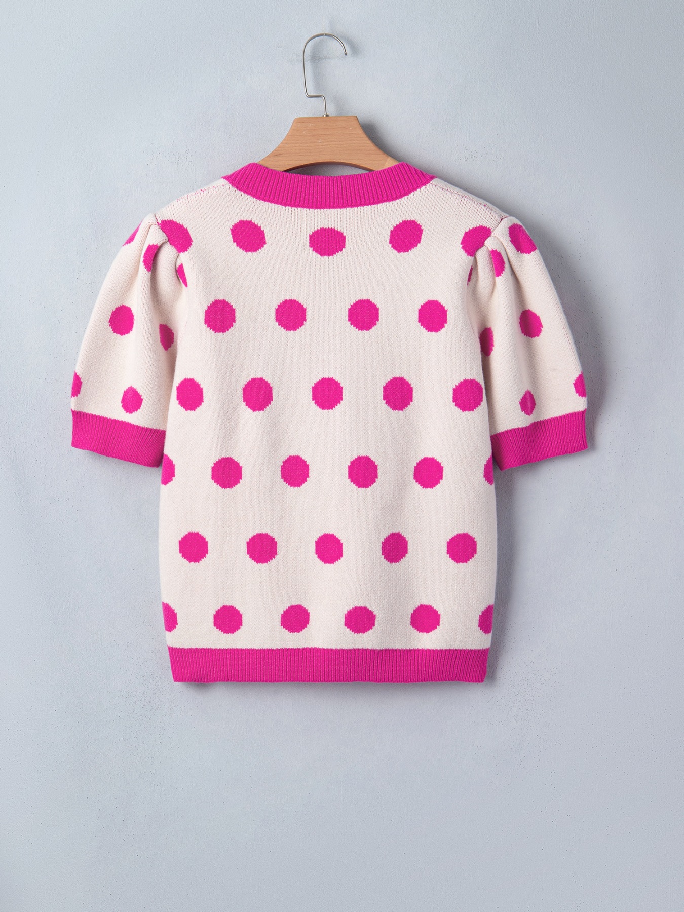 Polka Dot Puff Short Sleeve Sweater Top