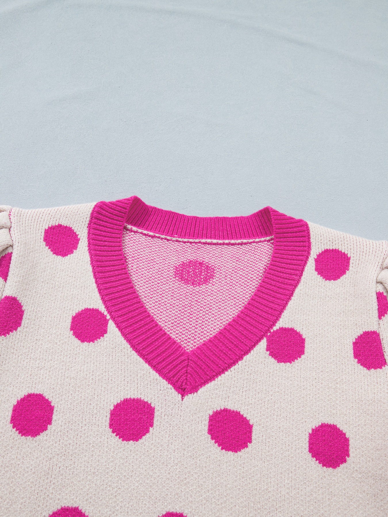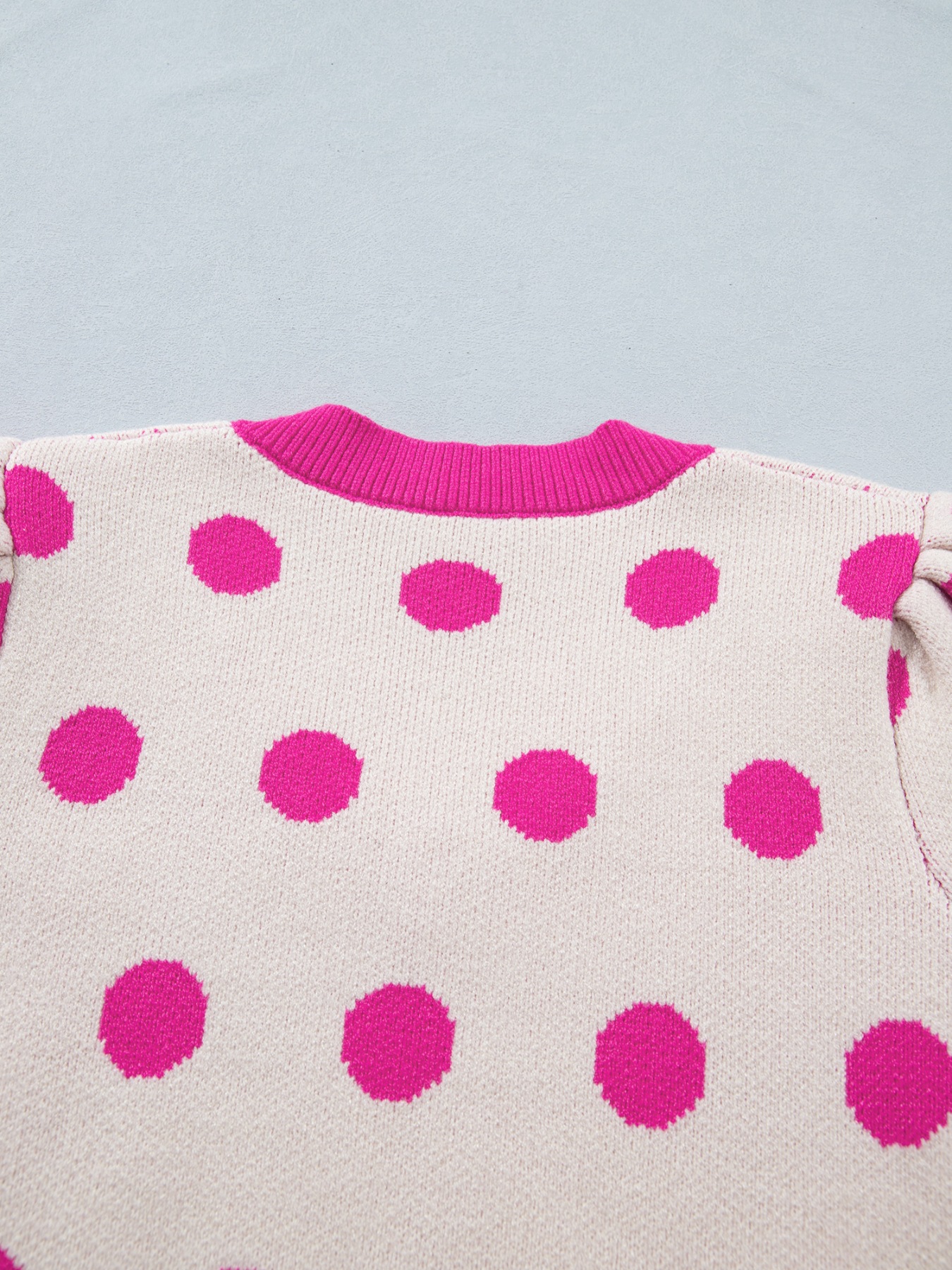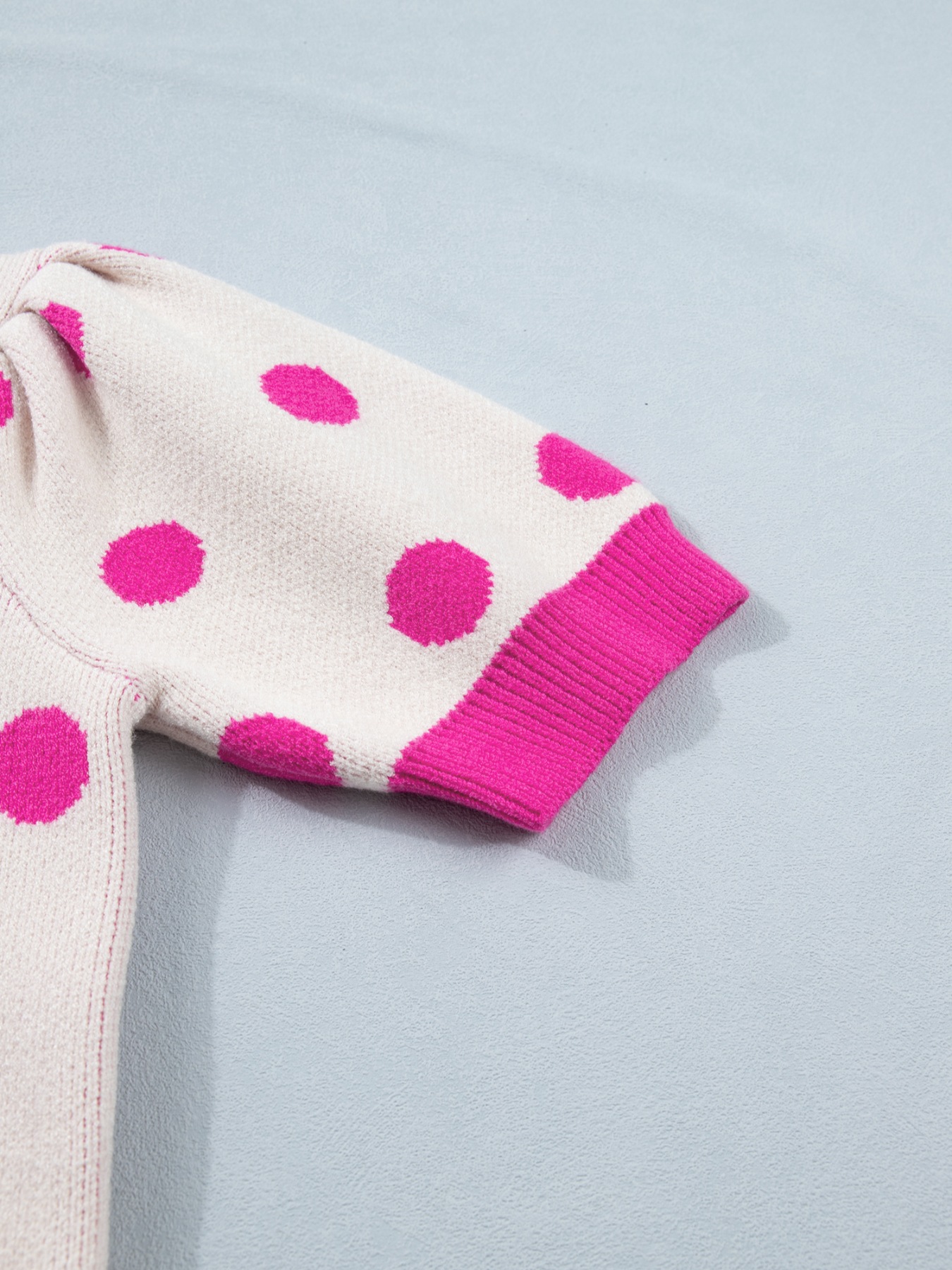 Polka Dot Puff Short Sleeve Sweater Top