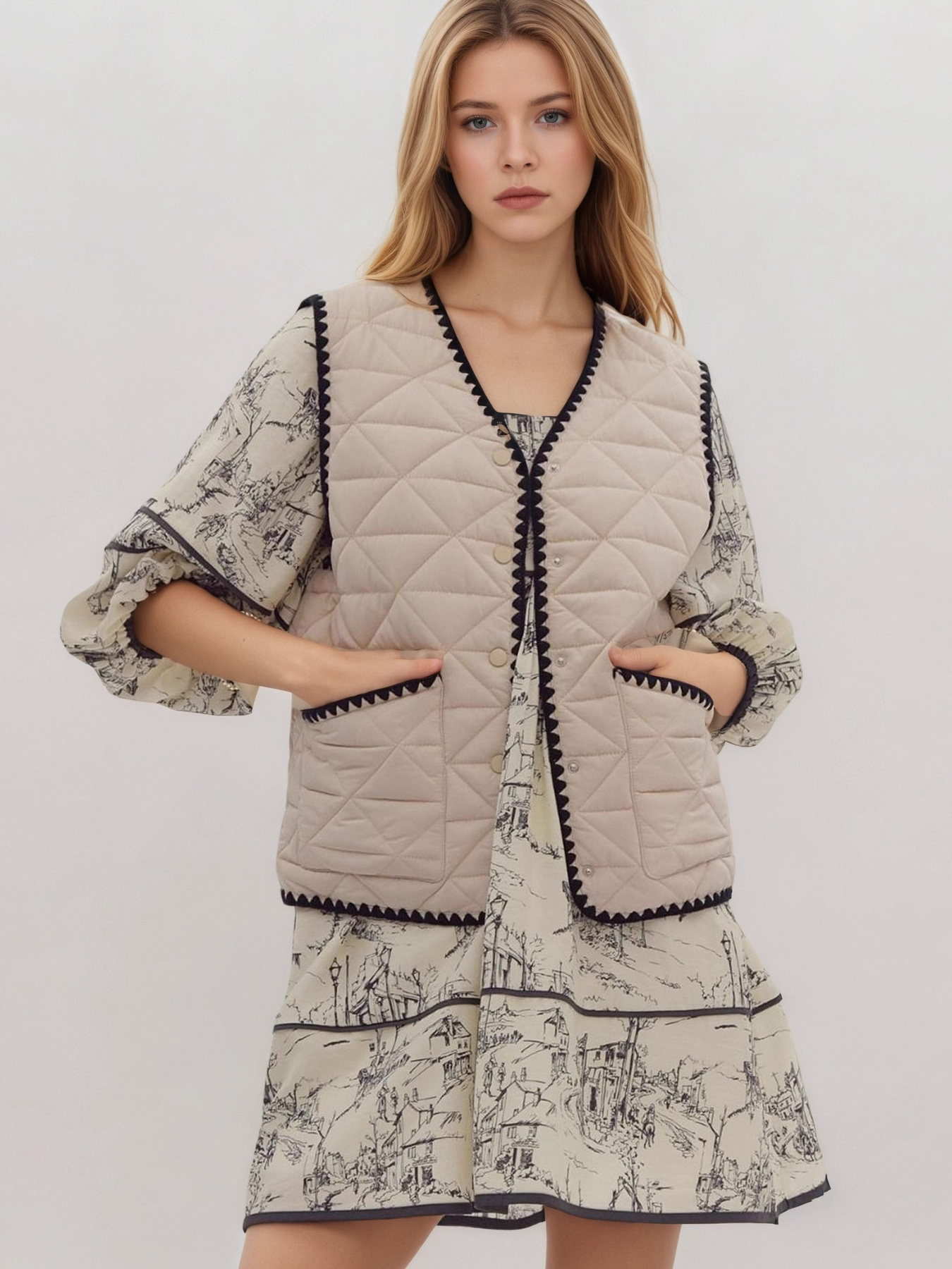 Textured Snap Down Vest Coat