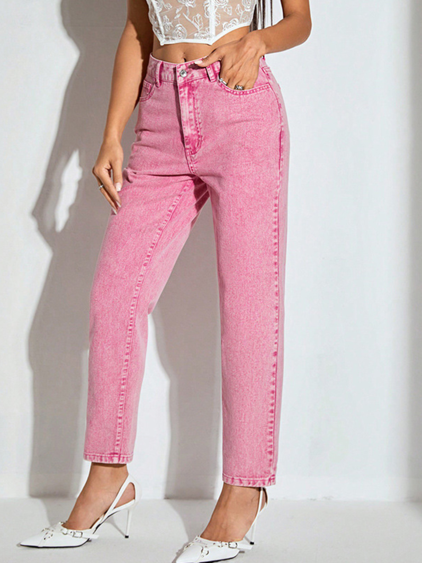 High-Waisted Wash Straight Leg Jeans