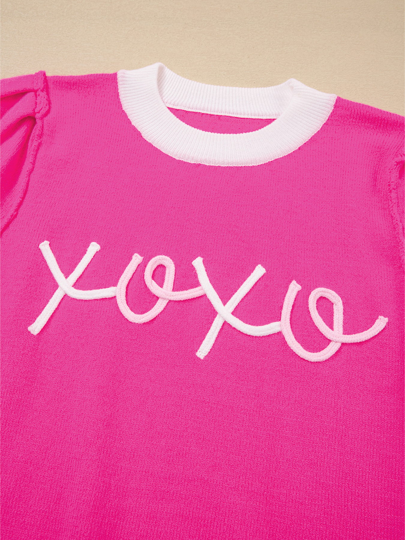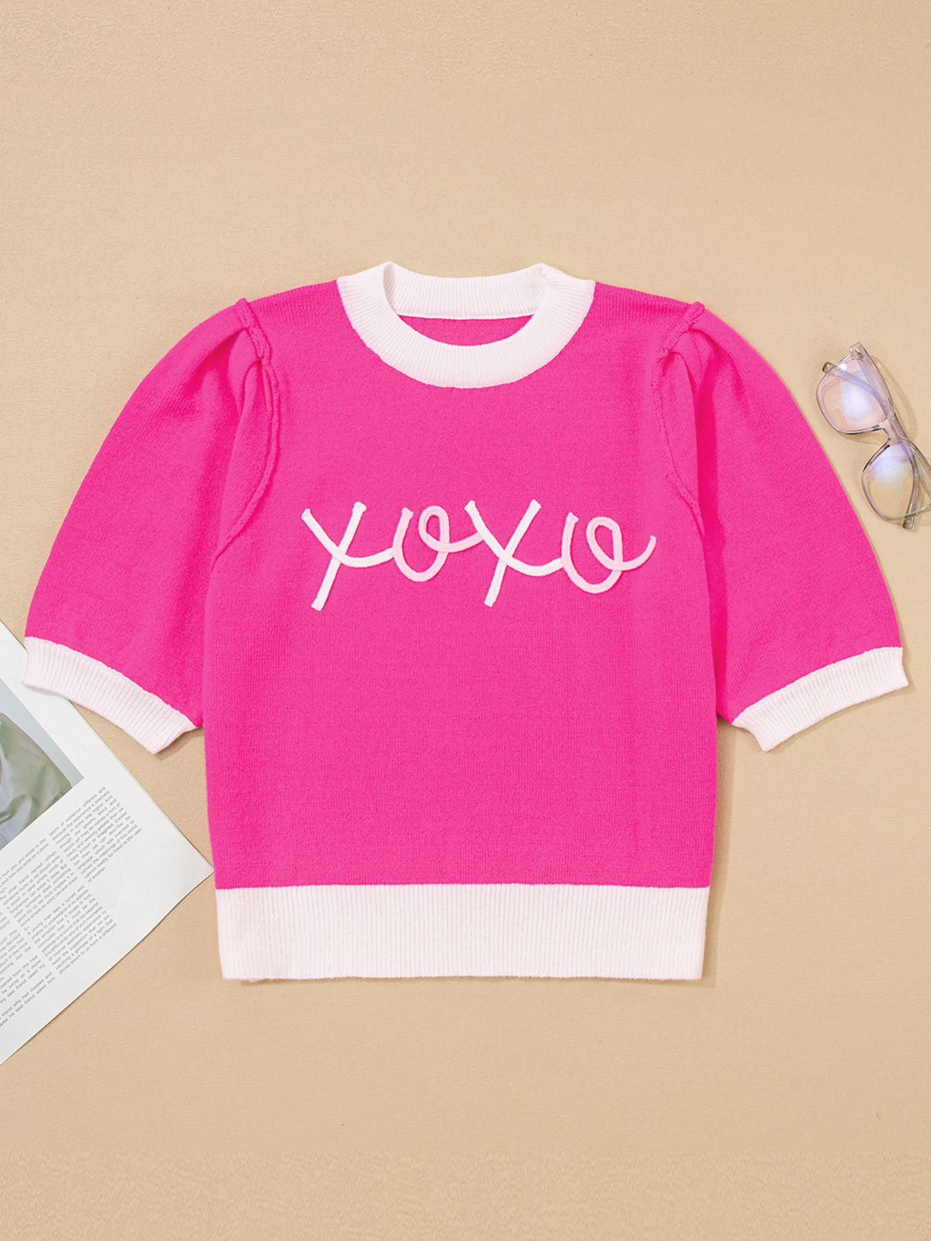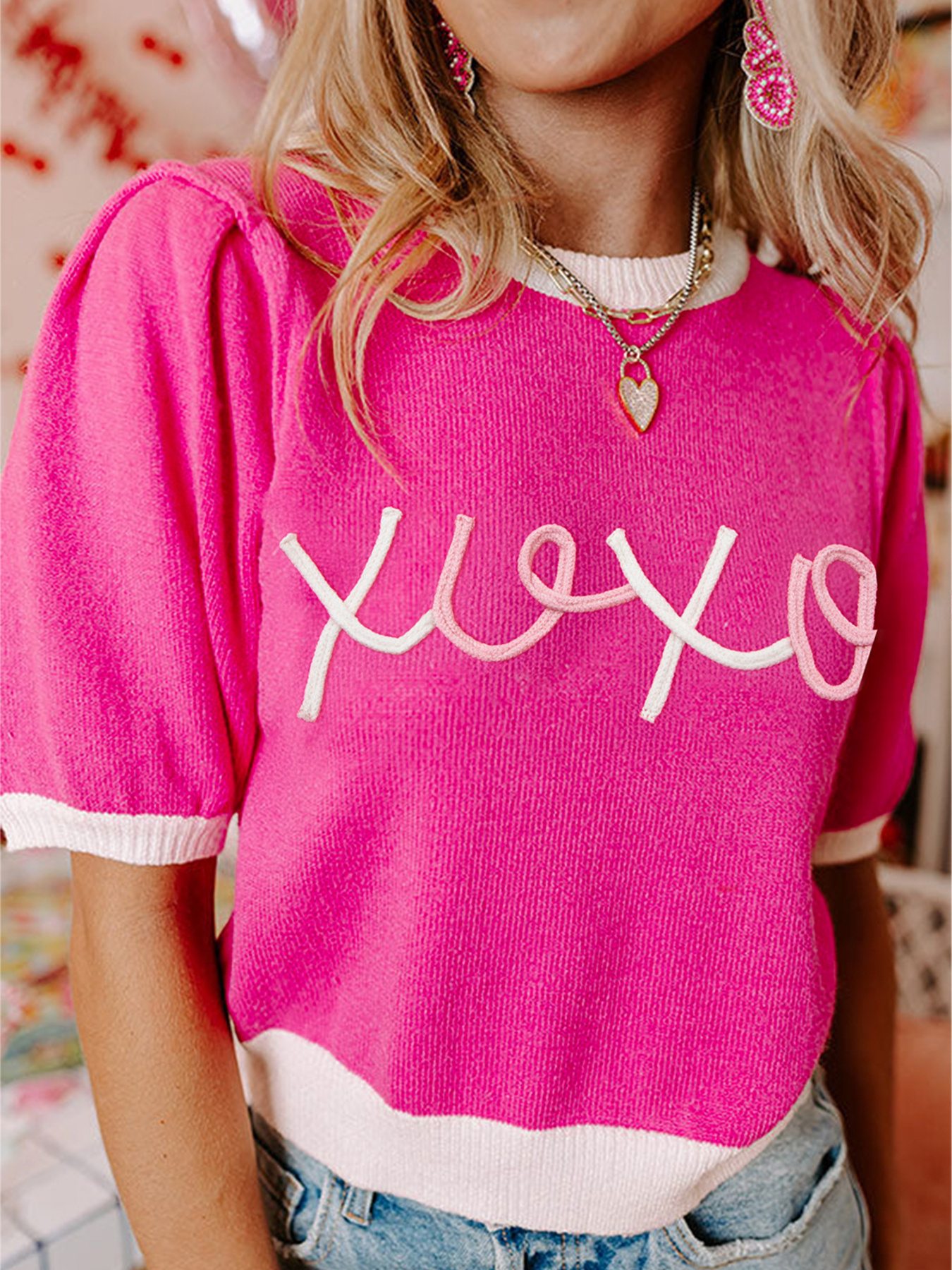 Xoxo Valentines Contrast Trim Crew Neck Short Sleeve Sweater