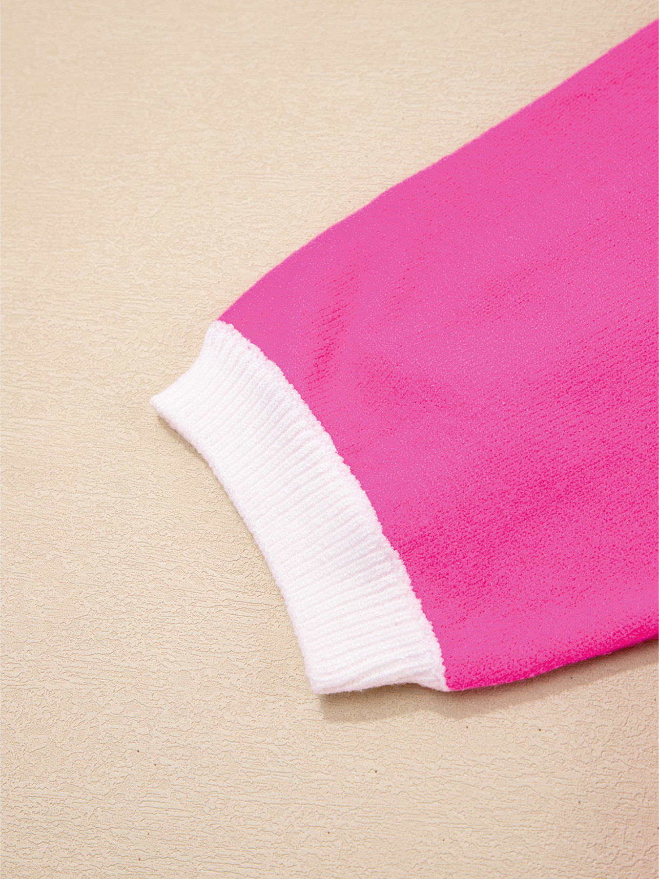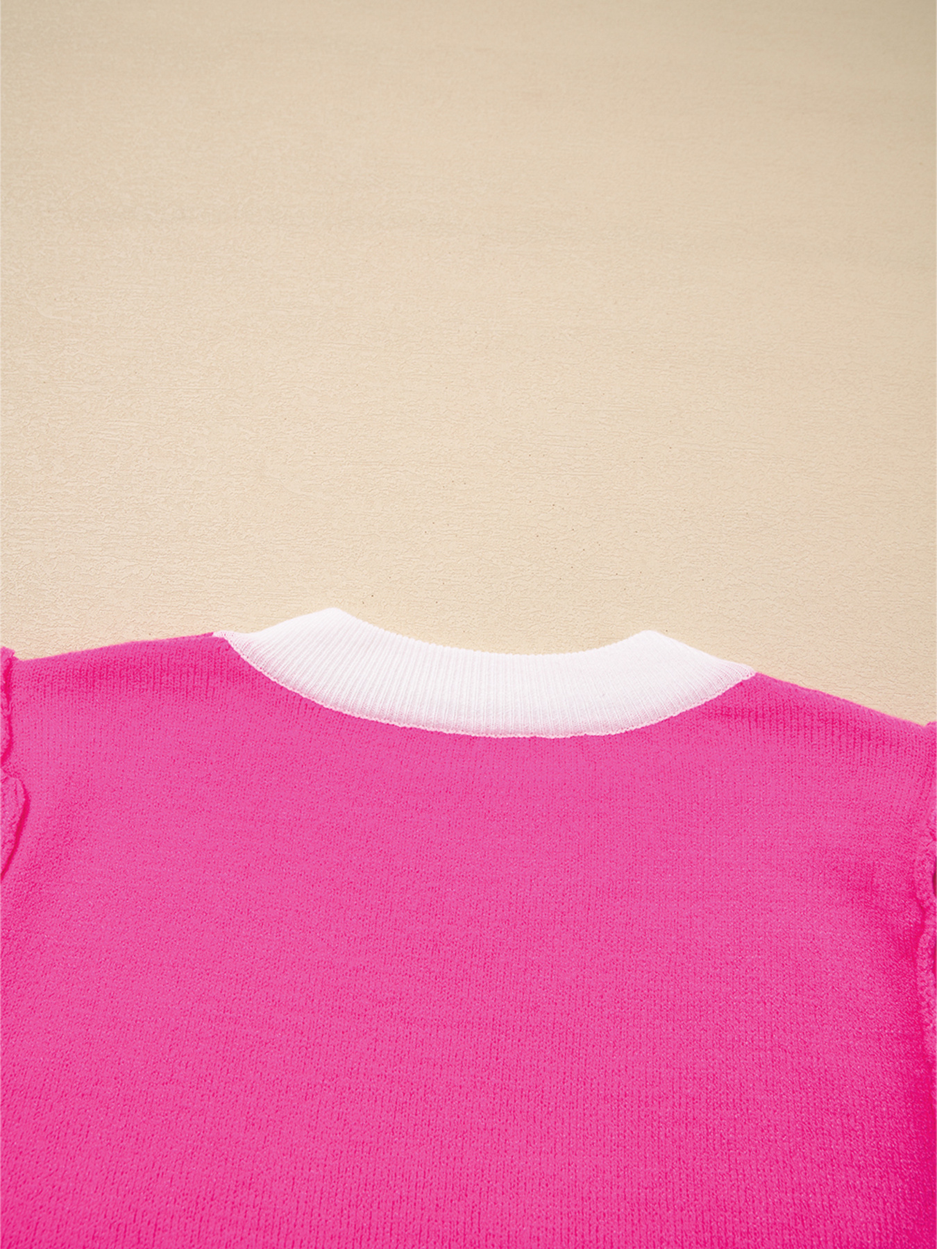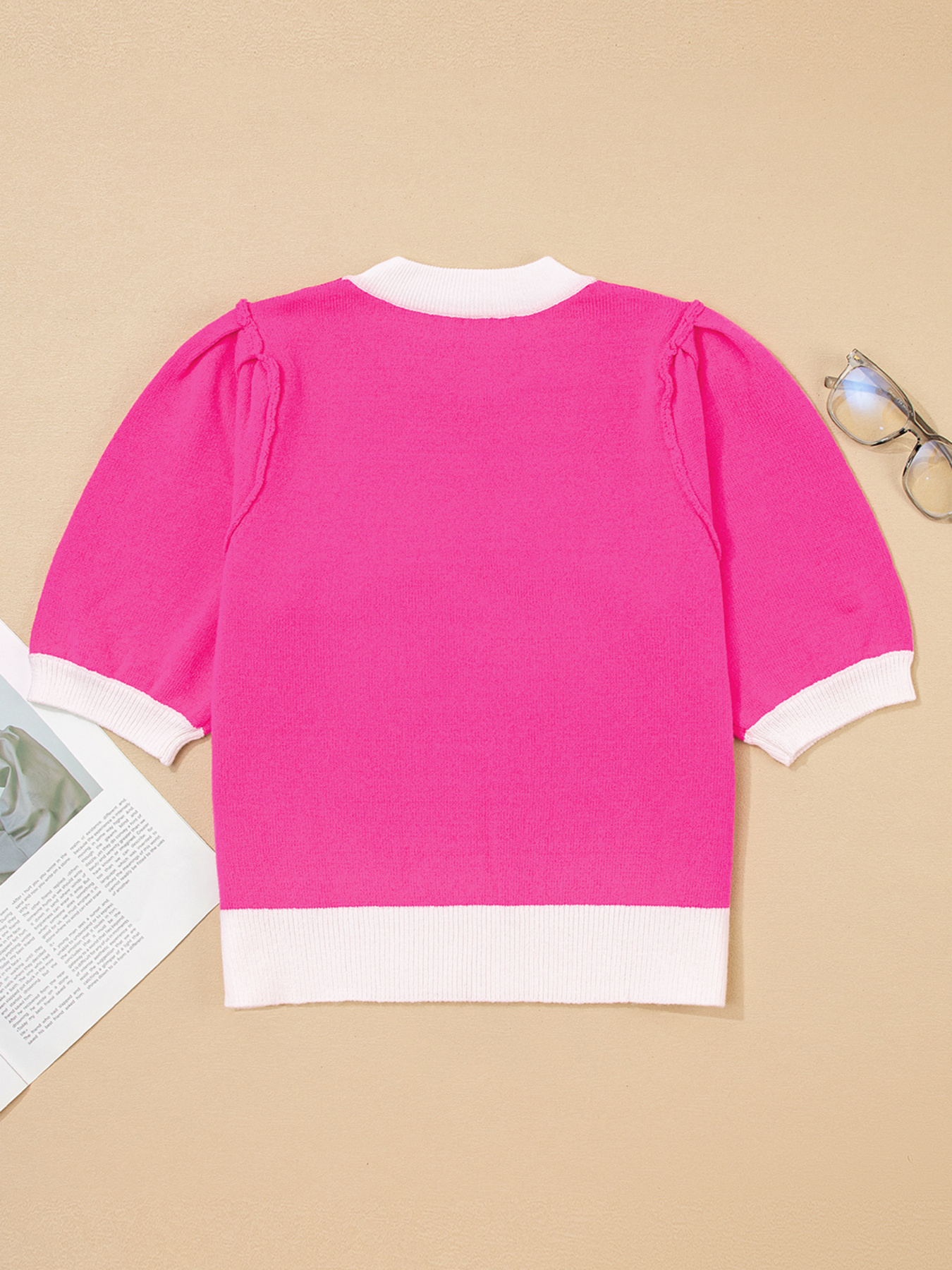 Xoxo Valentines Contrast Trim Crew Neck Short Sleeve Sweater