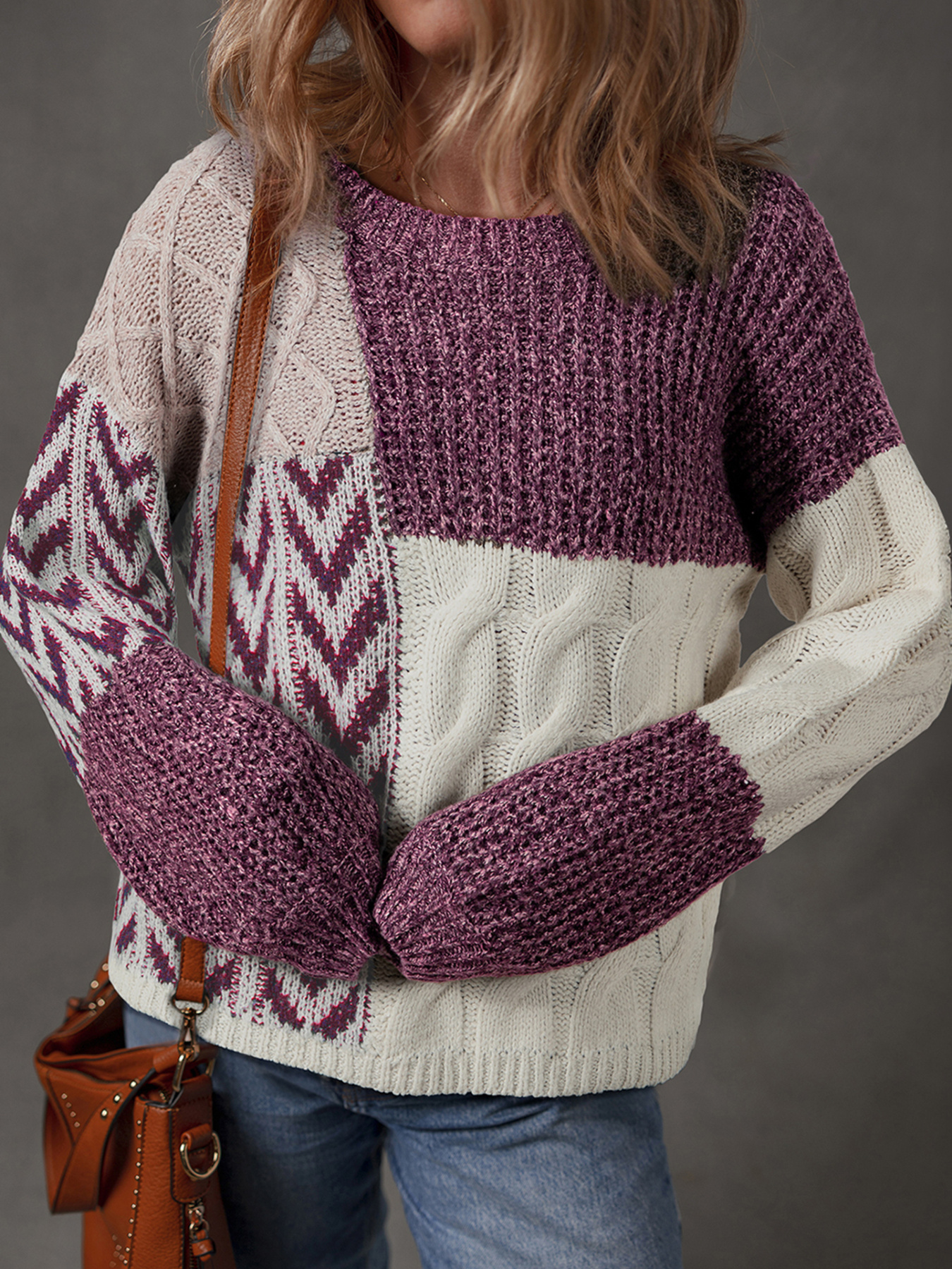 Color Block Patchwork Knotted Back Loose Fit Sweater