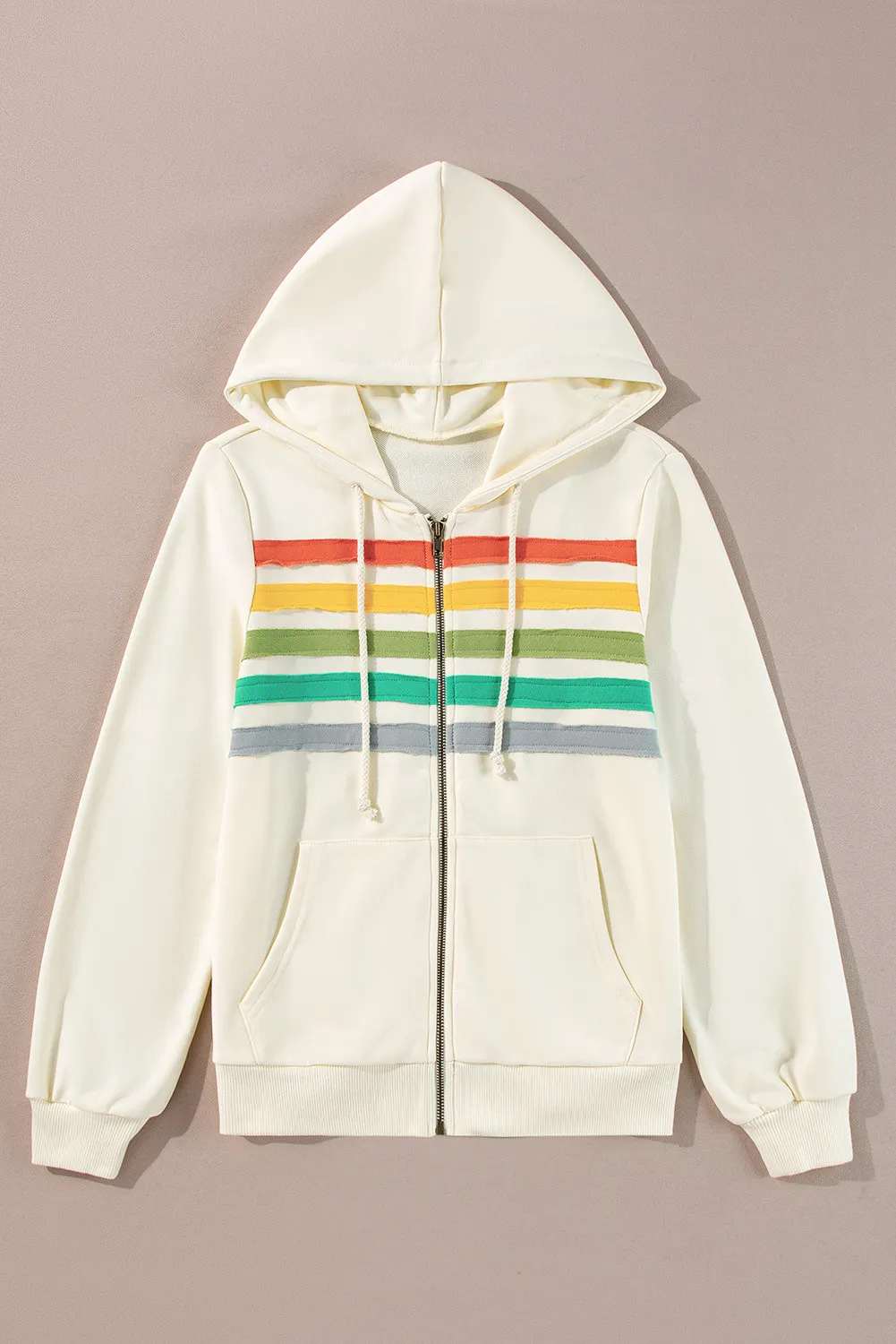 Drawstring Contrast Zip Up Long Sleeve Hoodie