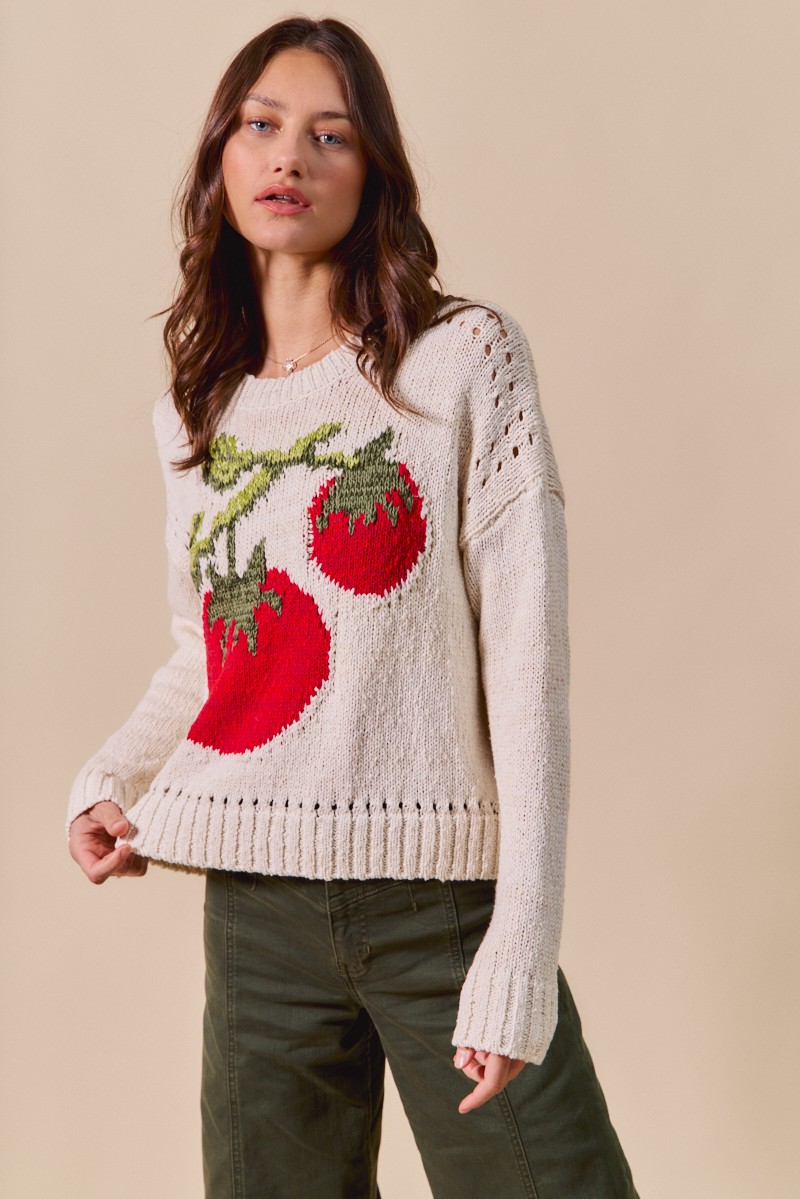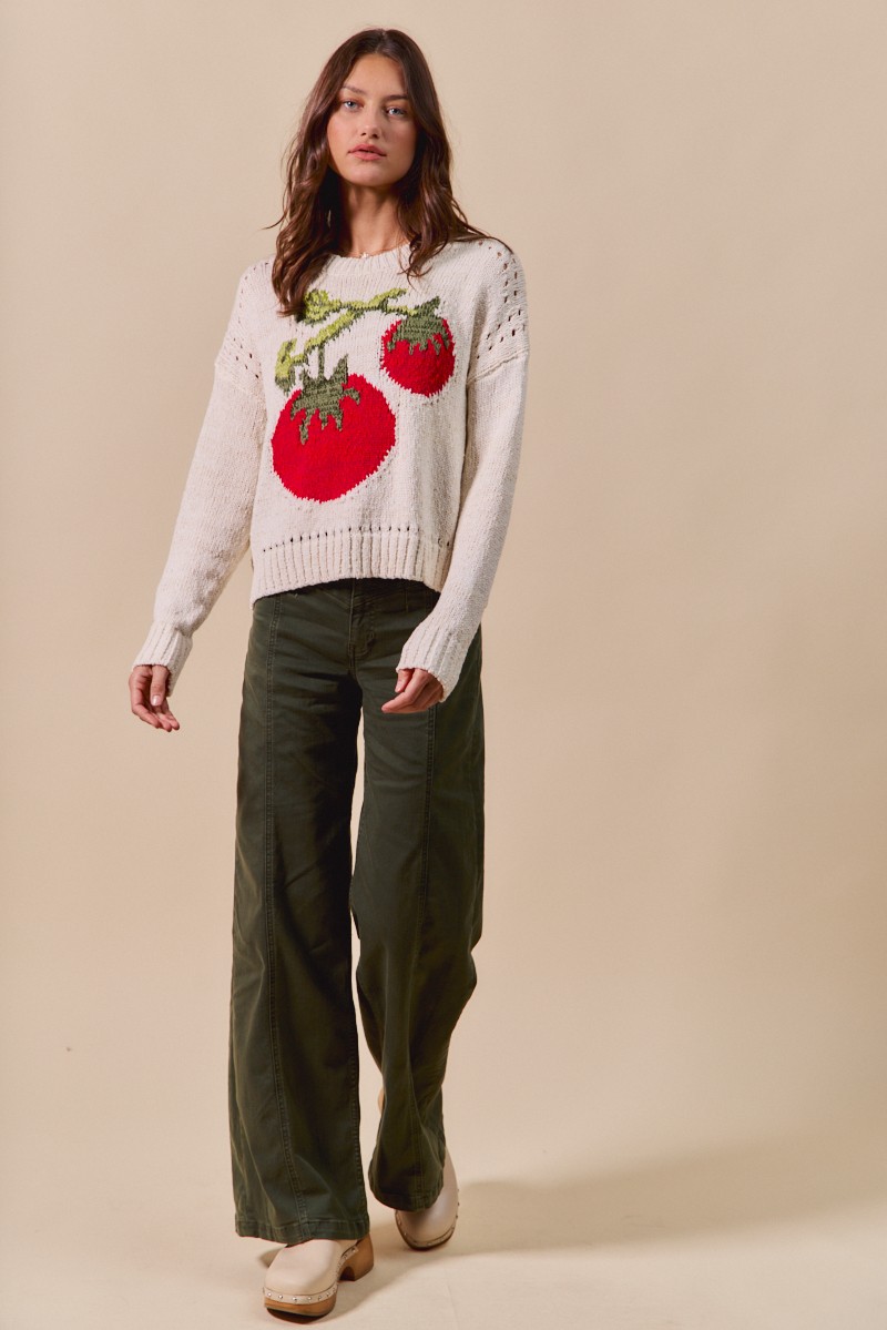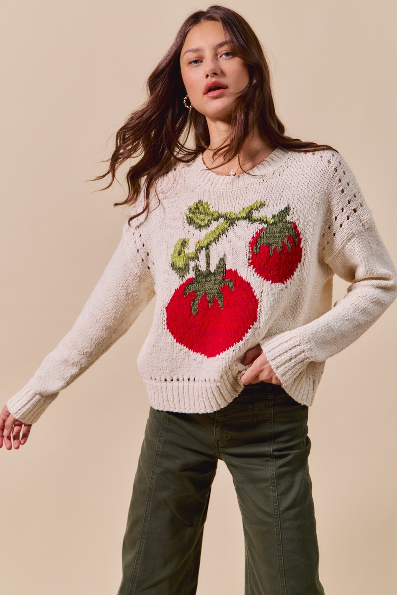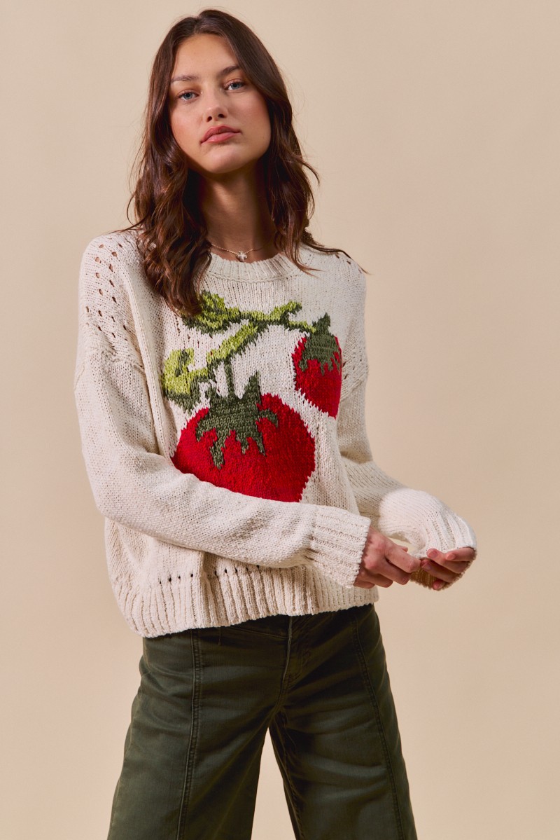So Me Vegetable Round Neck Long Sleeve Sweater