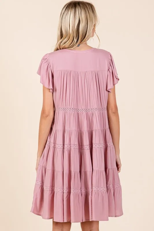 Mittoshop Lace Detail Ruffled Button Down Tiered Dress