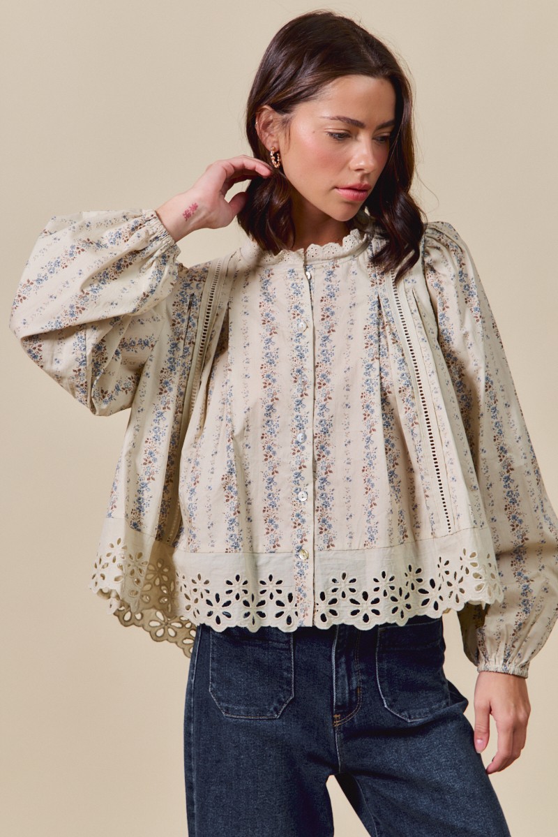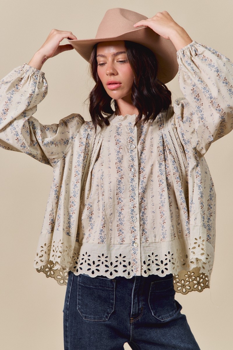 So Me Floral Print Lace Button Down Shirt