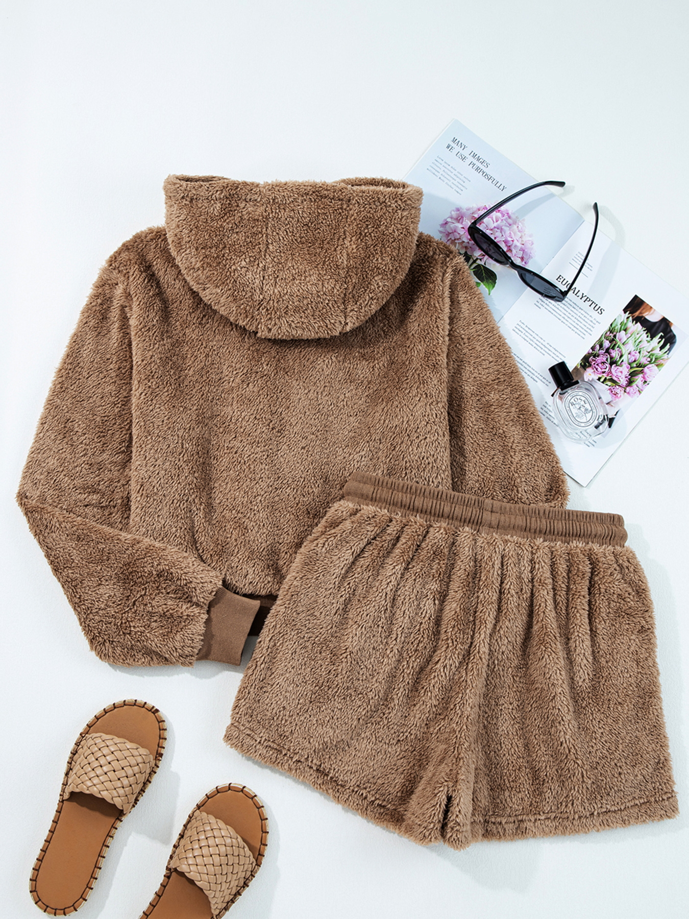 Zip Up Hoodie And Drawstring Shorts 2pcs Outfit