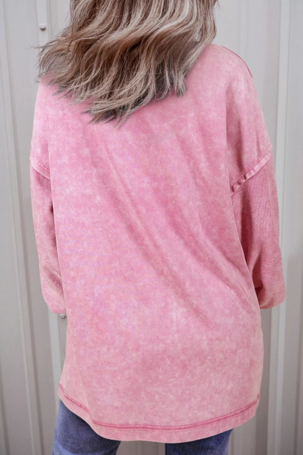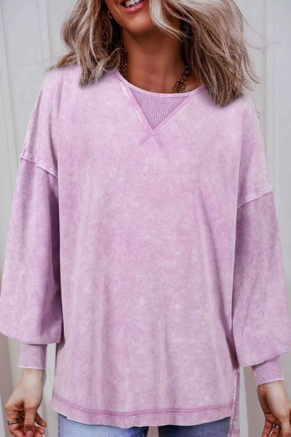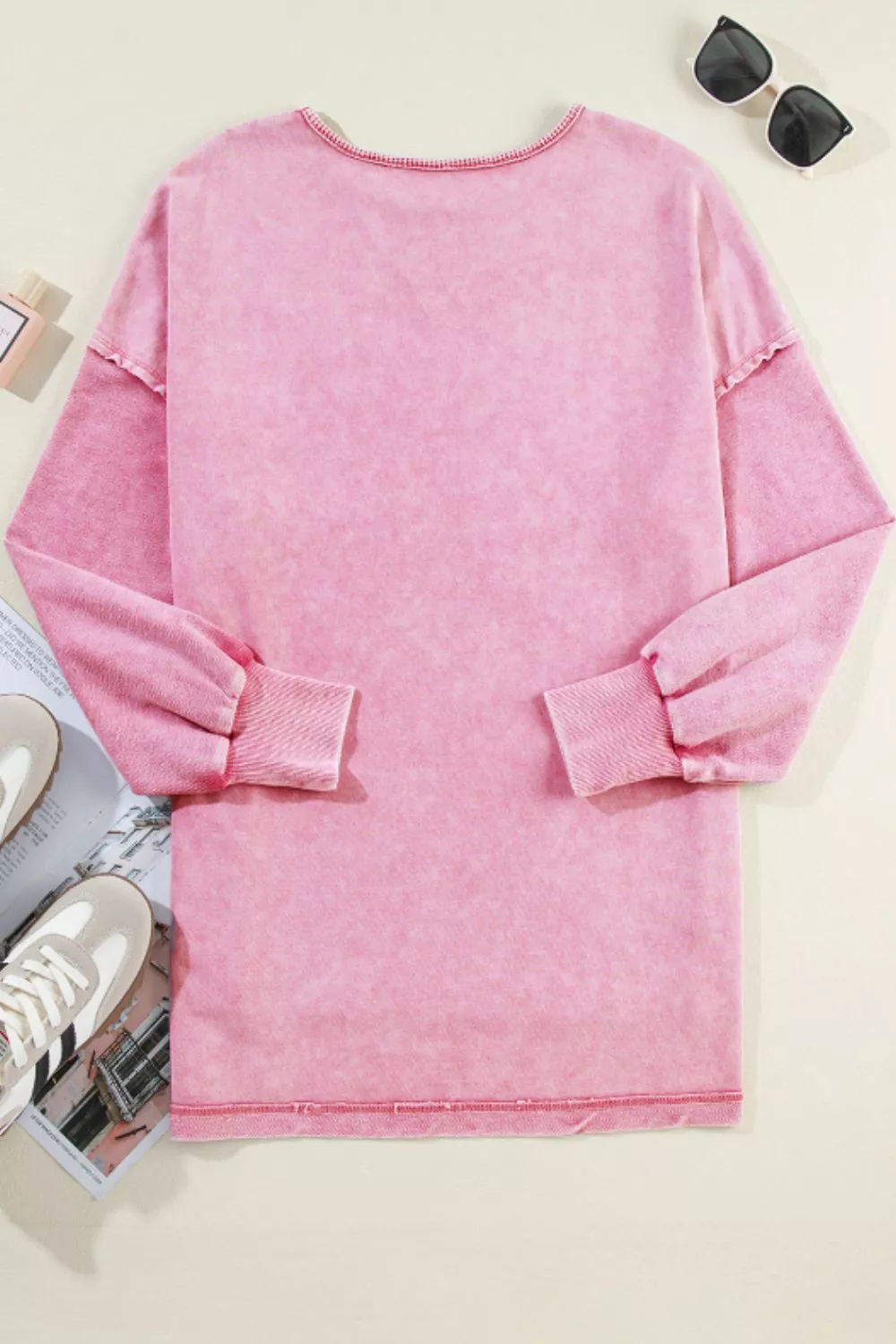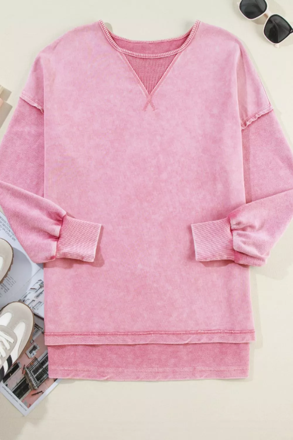 Exposed Seam Round Neck Long Sleeve Sweatshirt