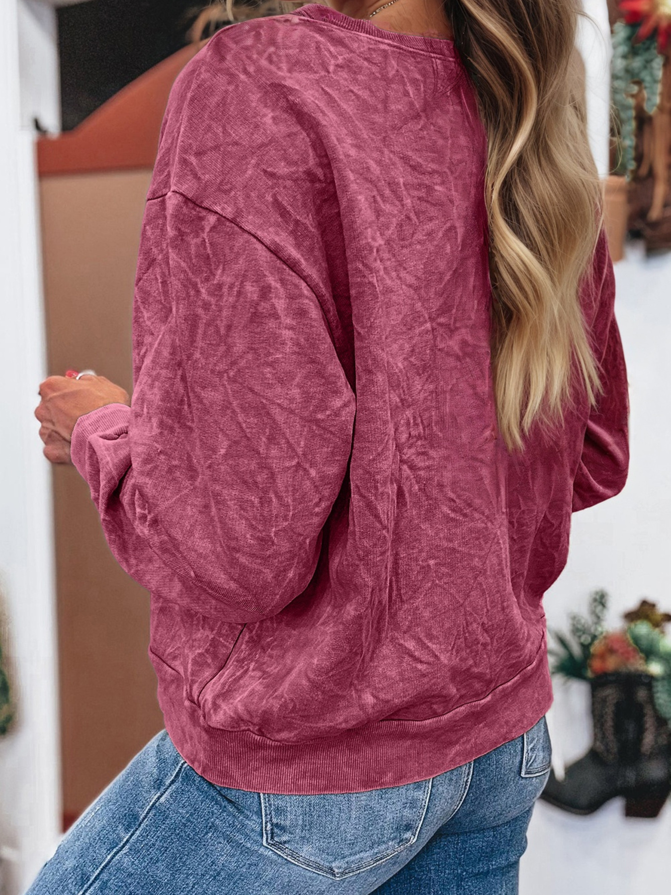 Saved By Grace Letter Embroidery Mineral Wash Loose Sweatshirt