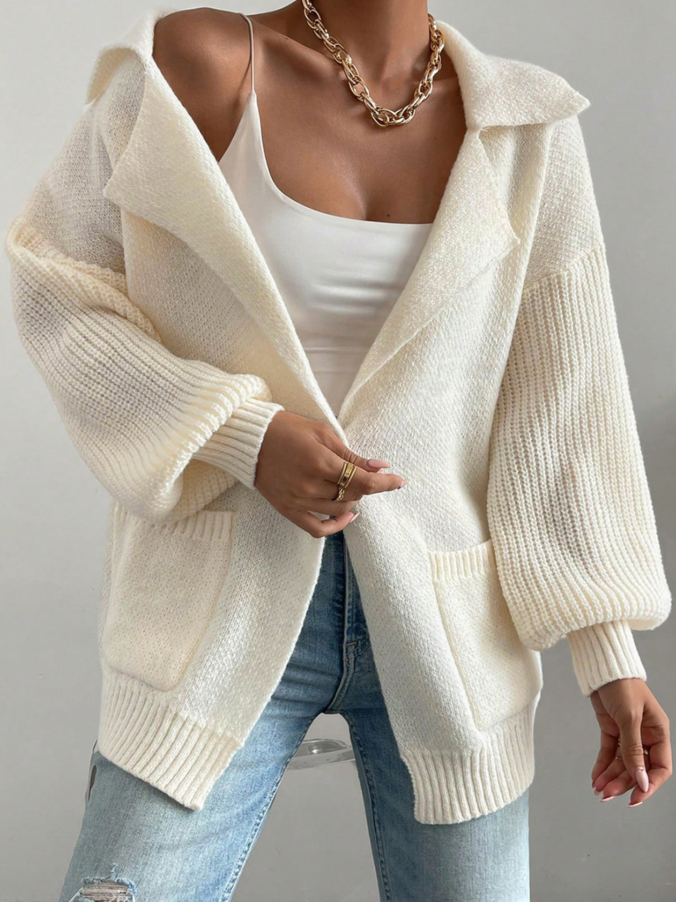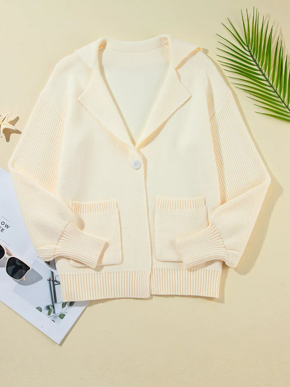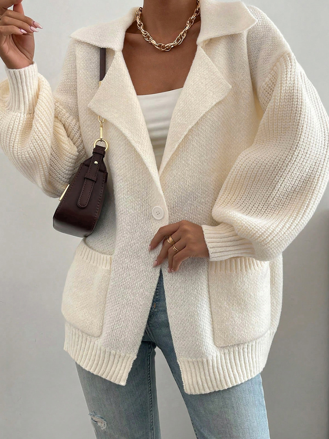 Solid Color Knit Lapel Collar Single Button Sweater Cardigan