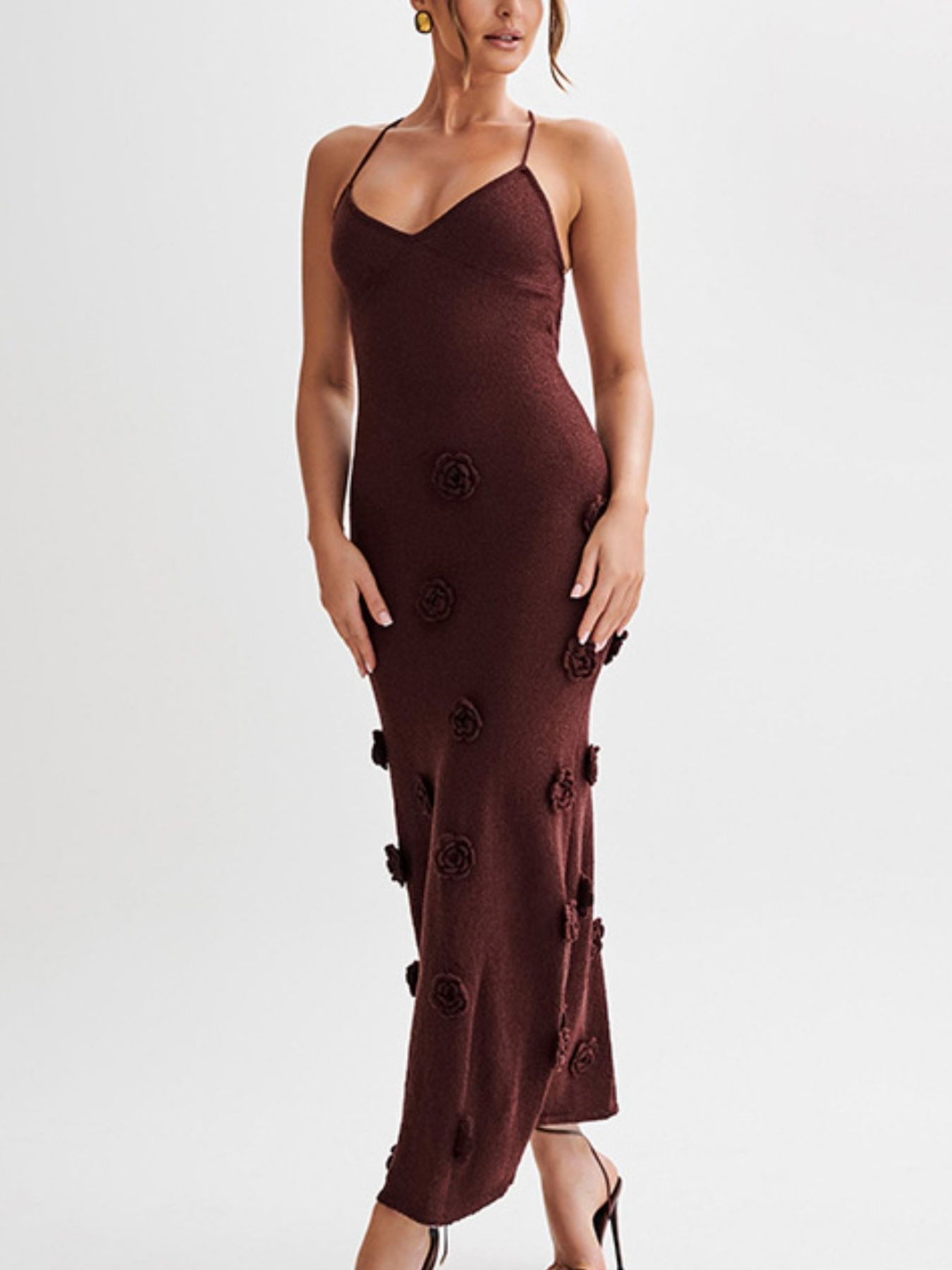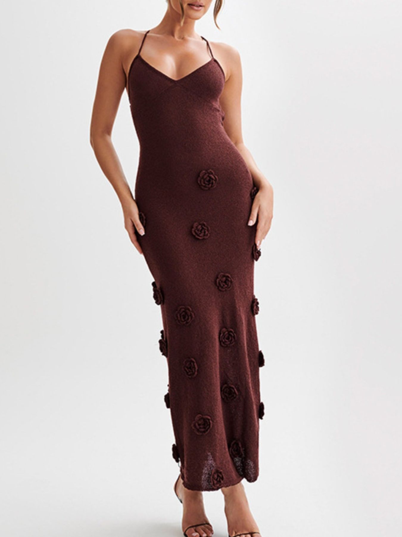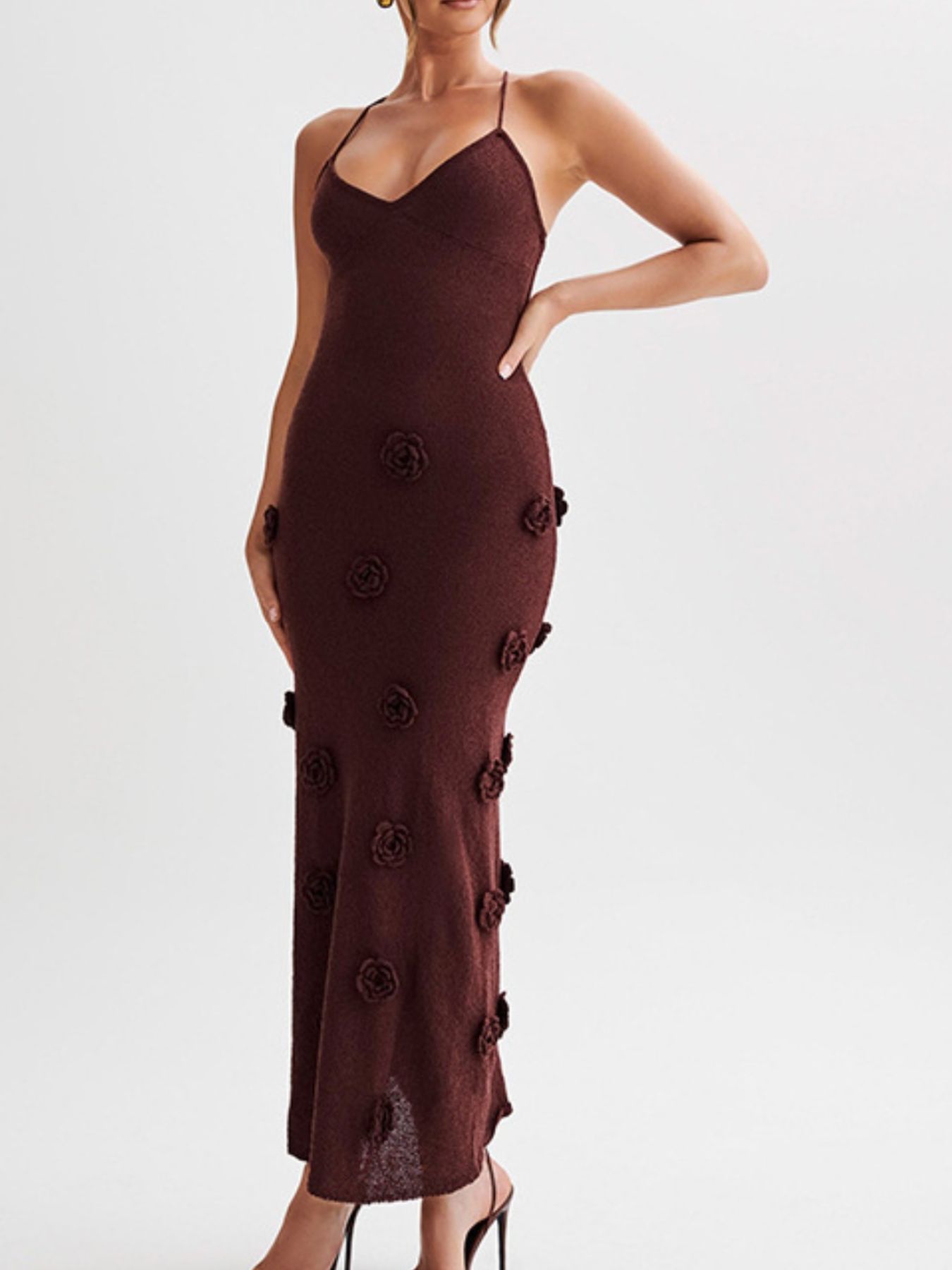 Floral Applique Spaghetti Strap Knit Dress